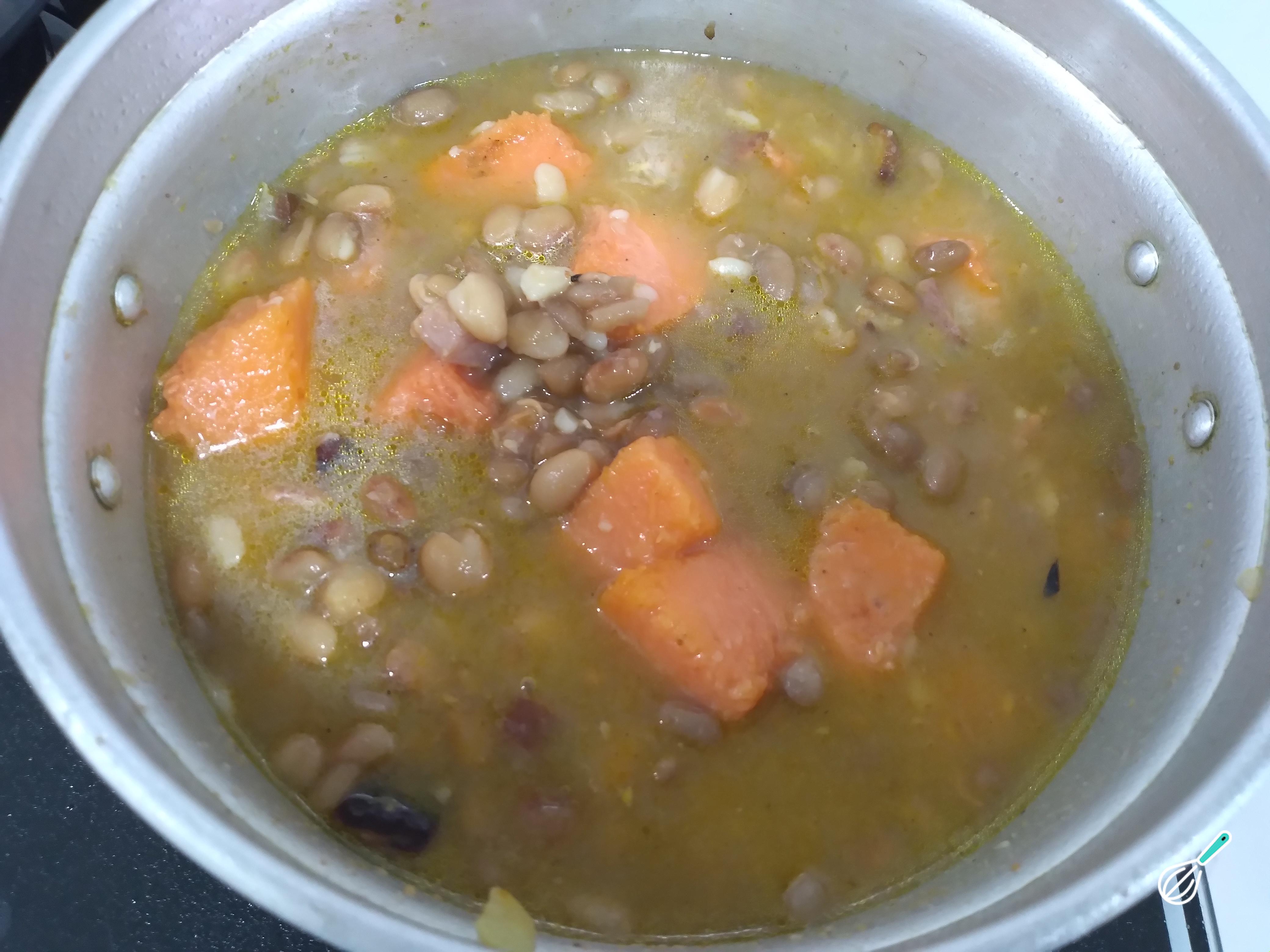 Seu feijão com abóbora está pronto. Nutritivo e delicioso. Uma refeição completa, perfeito para os dias frios. Faça e nos conte o que achou desta receita.