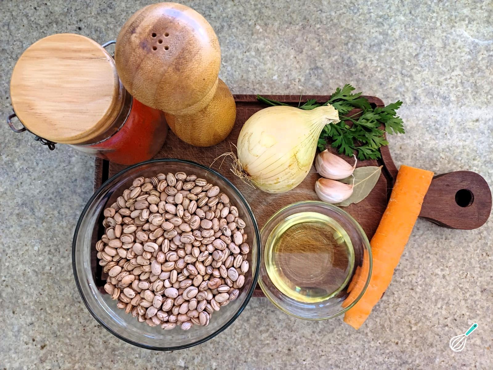 Reúna todos os ingredientes para a receita do feijão com cenoura para facilitar o seu preparo.