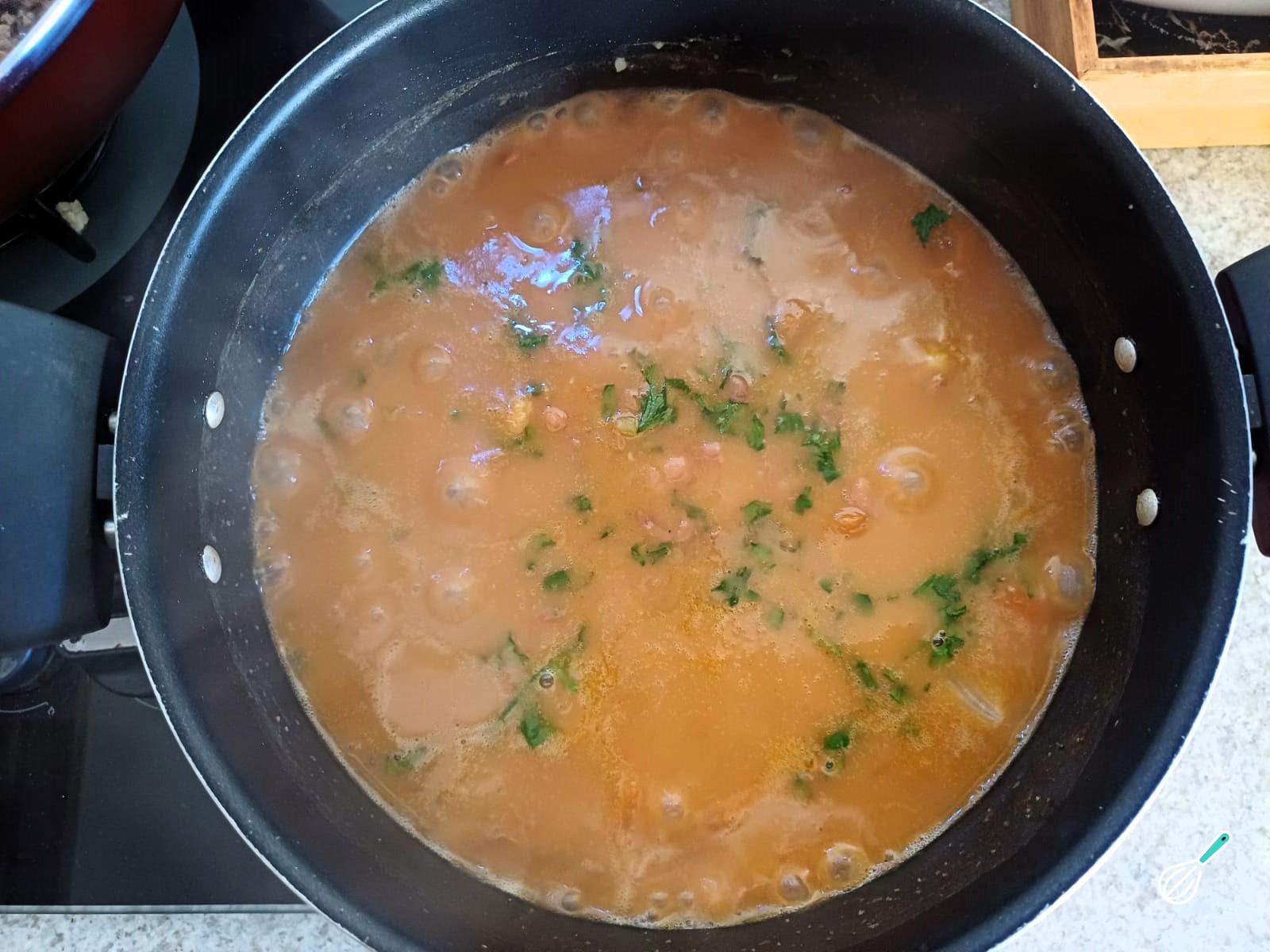 Deixe cozinhando por mais 10 minutos em fogo baixo, até que o caldo fique bem grosso.