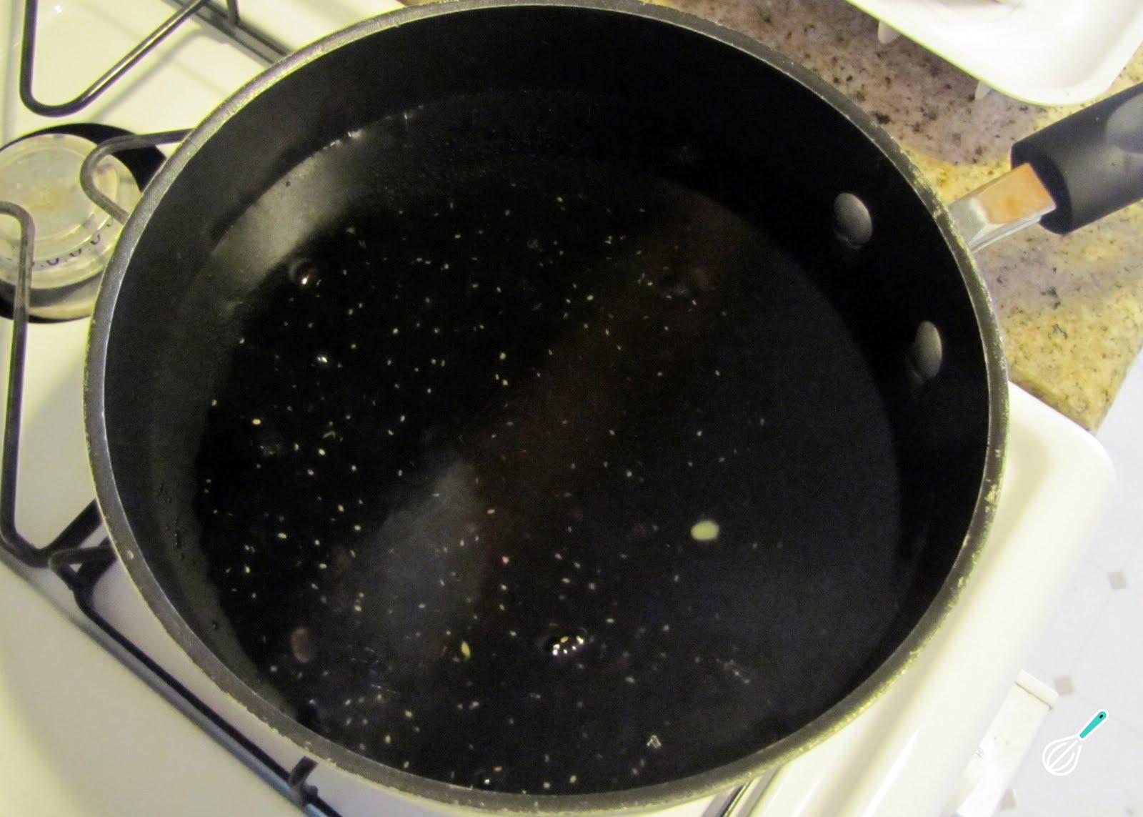 Coloque o feijão preto de molho na noite anterior à preparação. No dia seguinte, eles devem ser cozidos em uma panela para prosseguir com a receita de feijão preto com cogumelos.