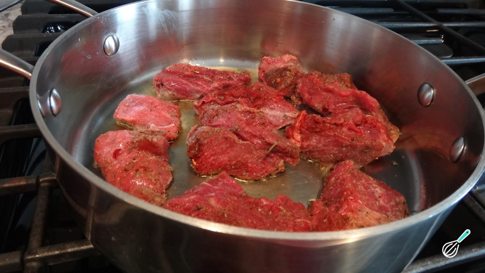 Quando os legumes são salteados e a carne também, junte tudo em uma panela, misture e adicione os cogumelos. Em seguida, cubra com água e deixe cozinhar com sal até chegar o cozimento desejado.