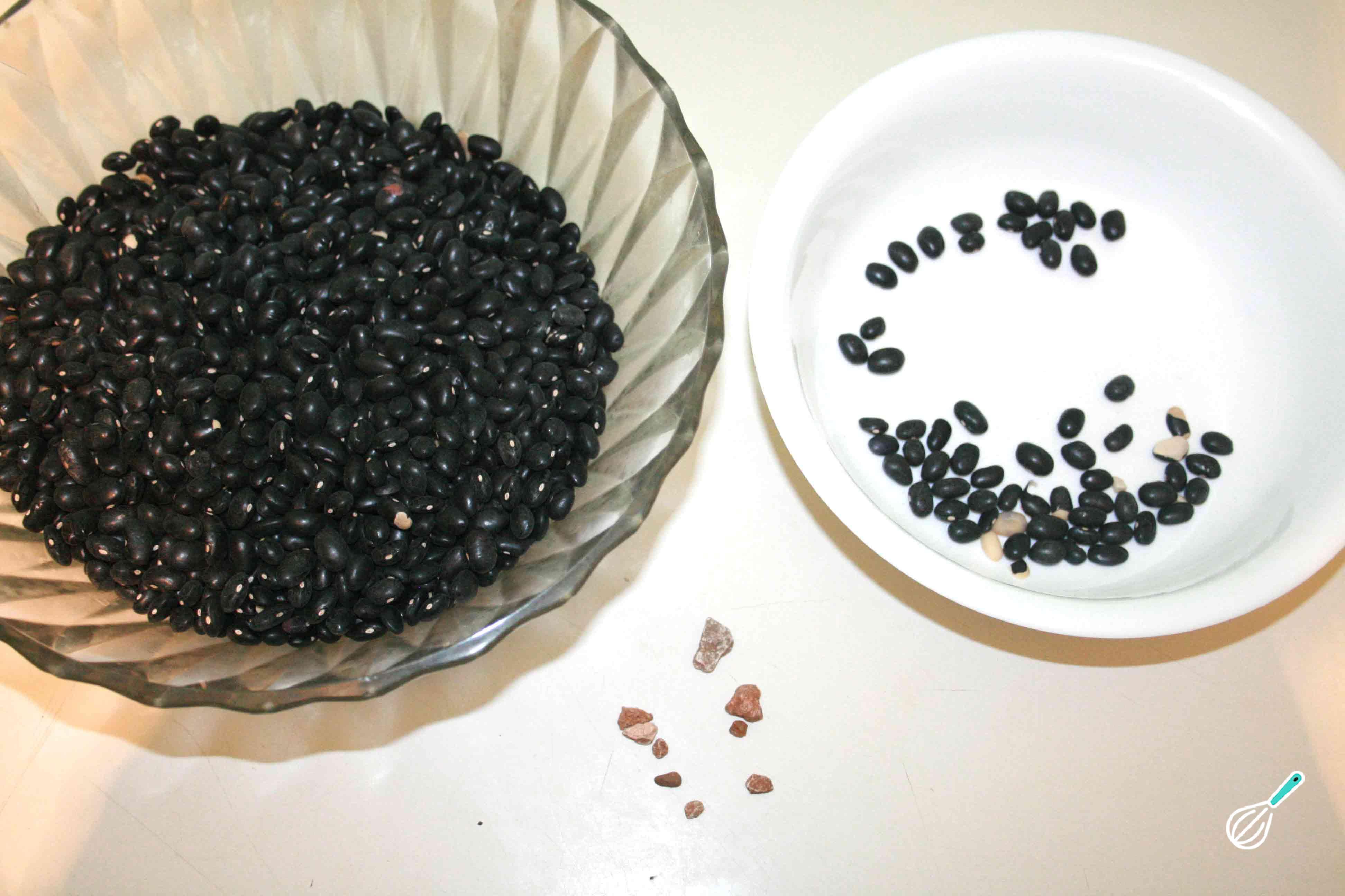 Comece por escolher o feijão preto, retirando os feijões com defeito e impurezas como pedras e folhas.