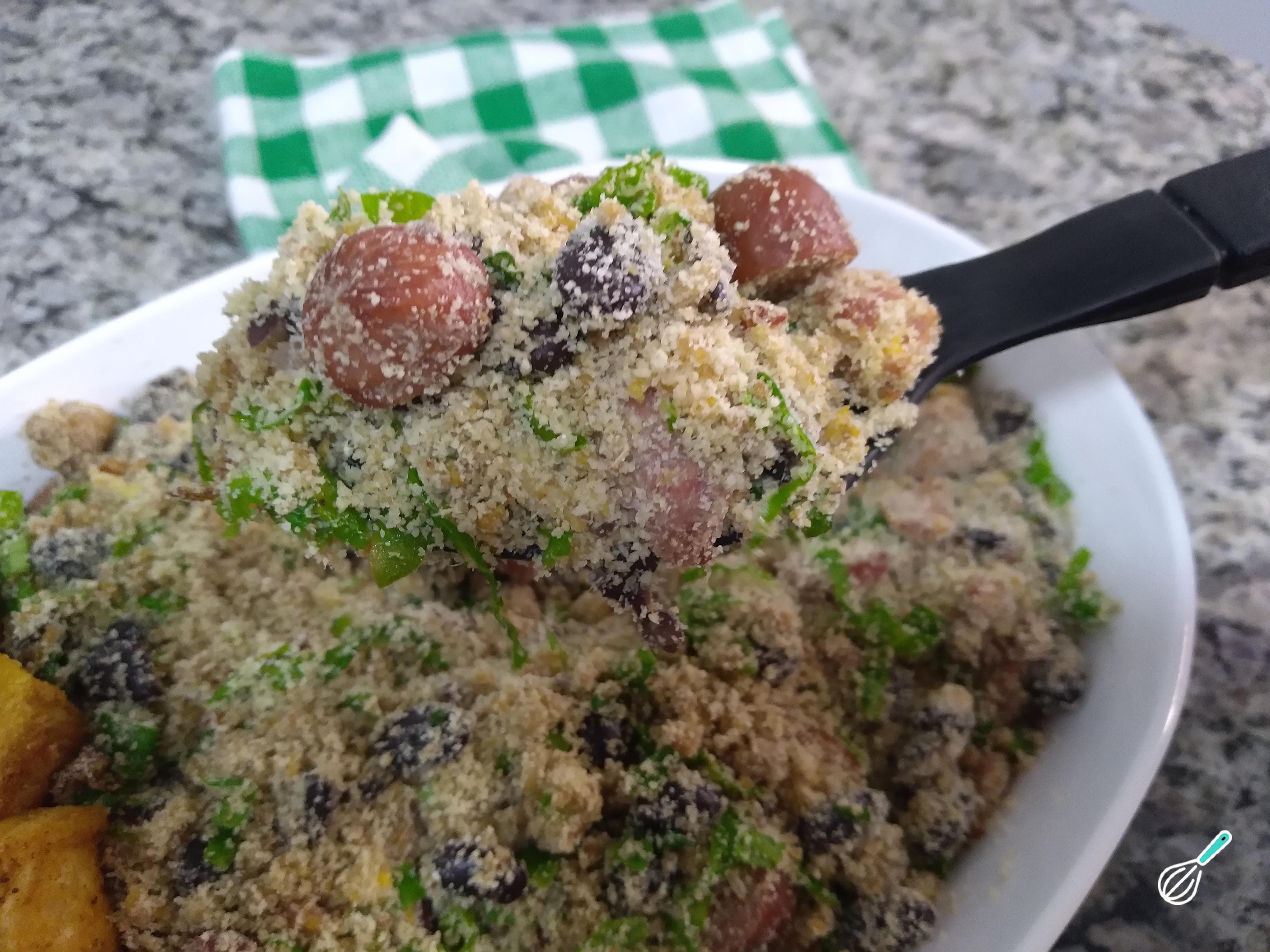 - Farofa de feijão tropeiro: essa versão é preparada com o nosso clássico feijão carioca, e também fica uma delícia!