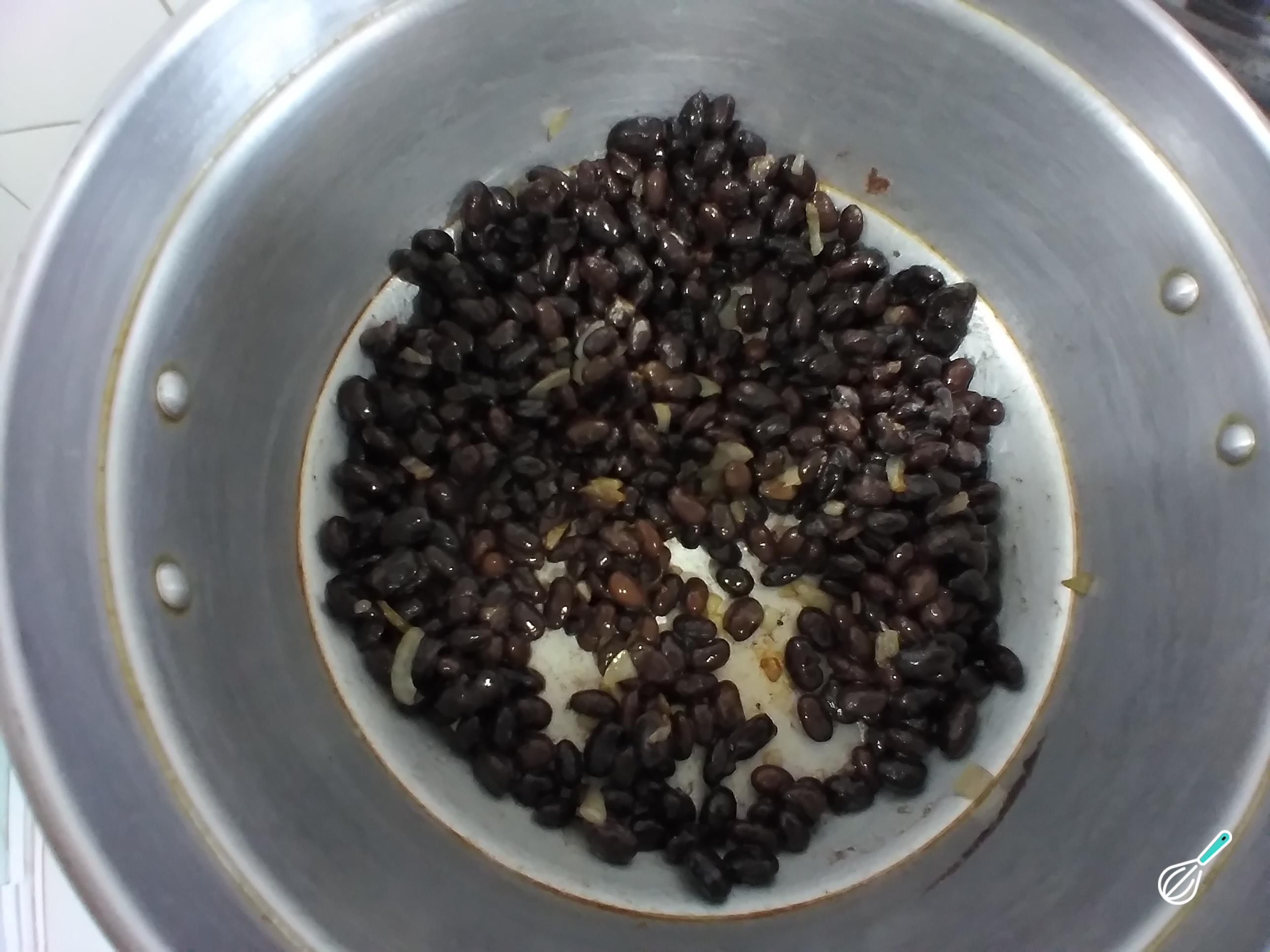 Dica: Nesse período, continue mexendo o feijão para que não agarre. Se for necessário, acrescente mais óleo de soja.