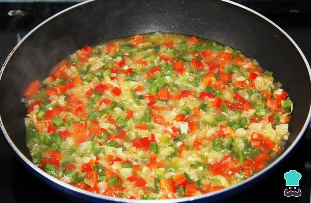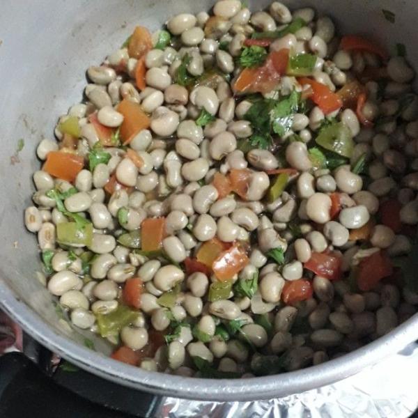 Dica: Enquanto o feijão de corda coze, comece cortando as verduras em cubinhos.