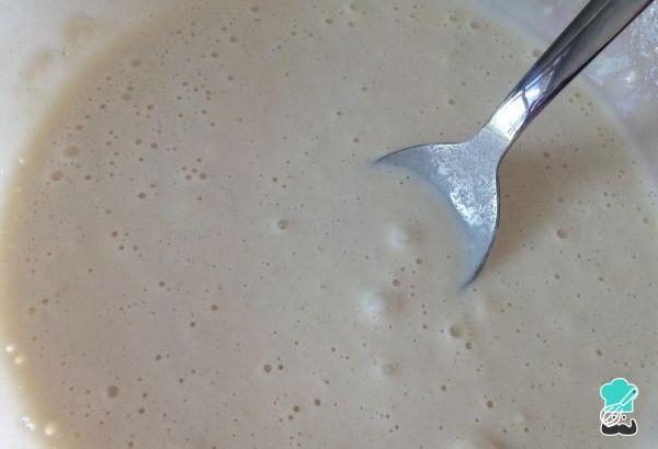 Em uma tigela, junte a farinha, os ovos, o leite, uma pitada de sal e misture bem até obter uma massa homogênea e líquida.
