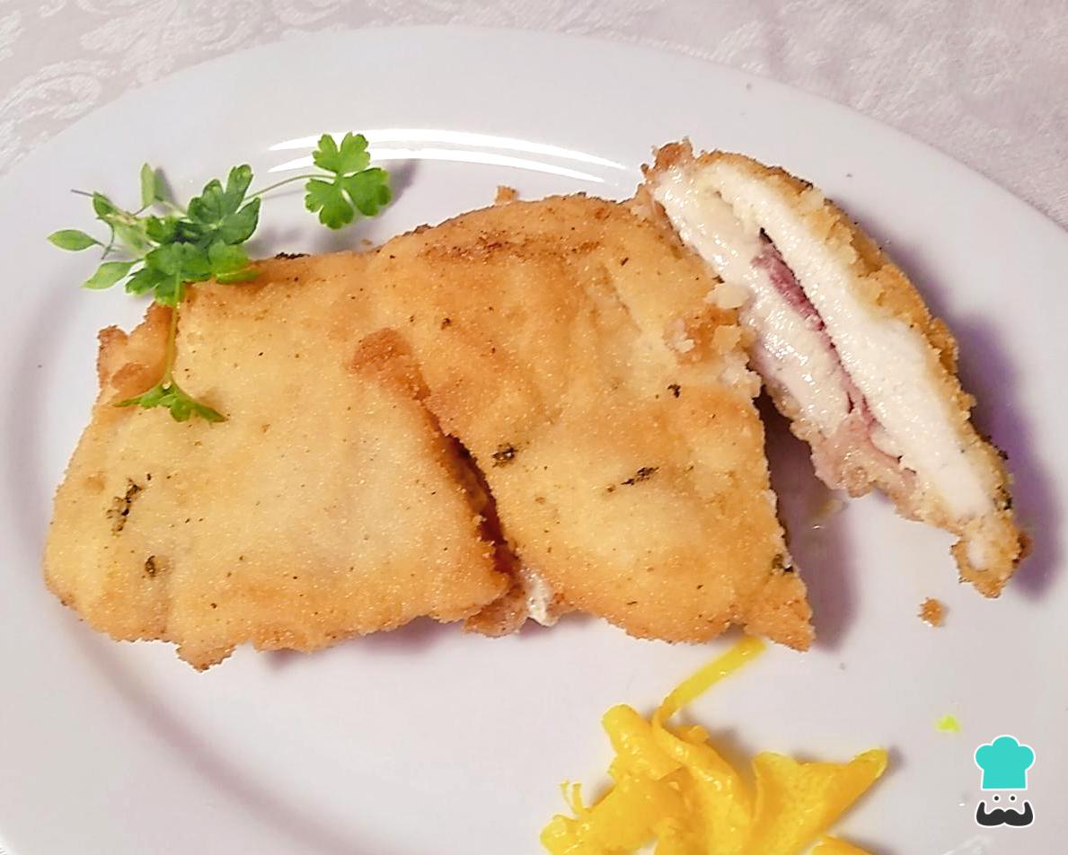 Como fazer Filé de frango empanado recheado com presunto e queijo: