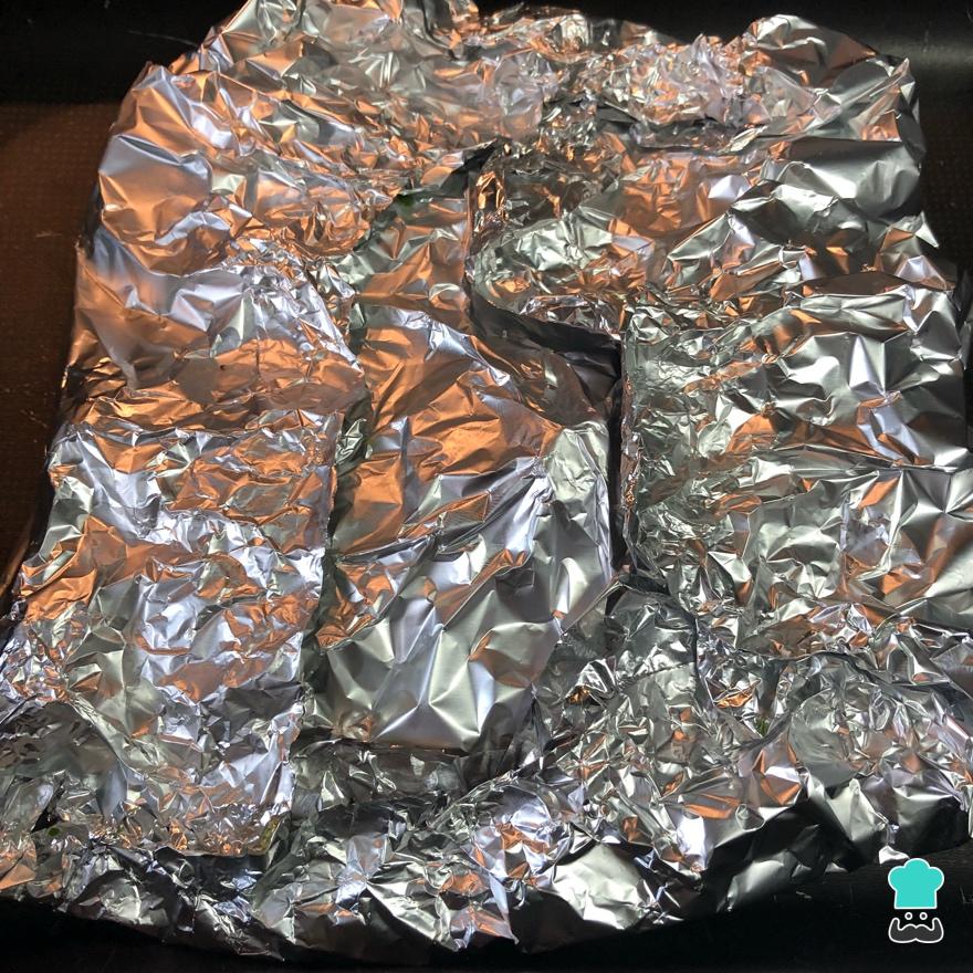 Dica: É importante que o papel alumínio ou manteiga tenham tamanho suficiente para cobrir o peixe também.
