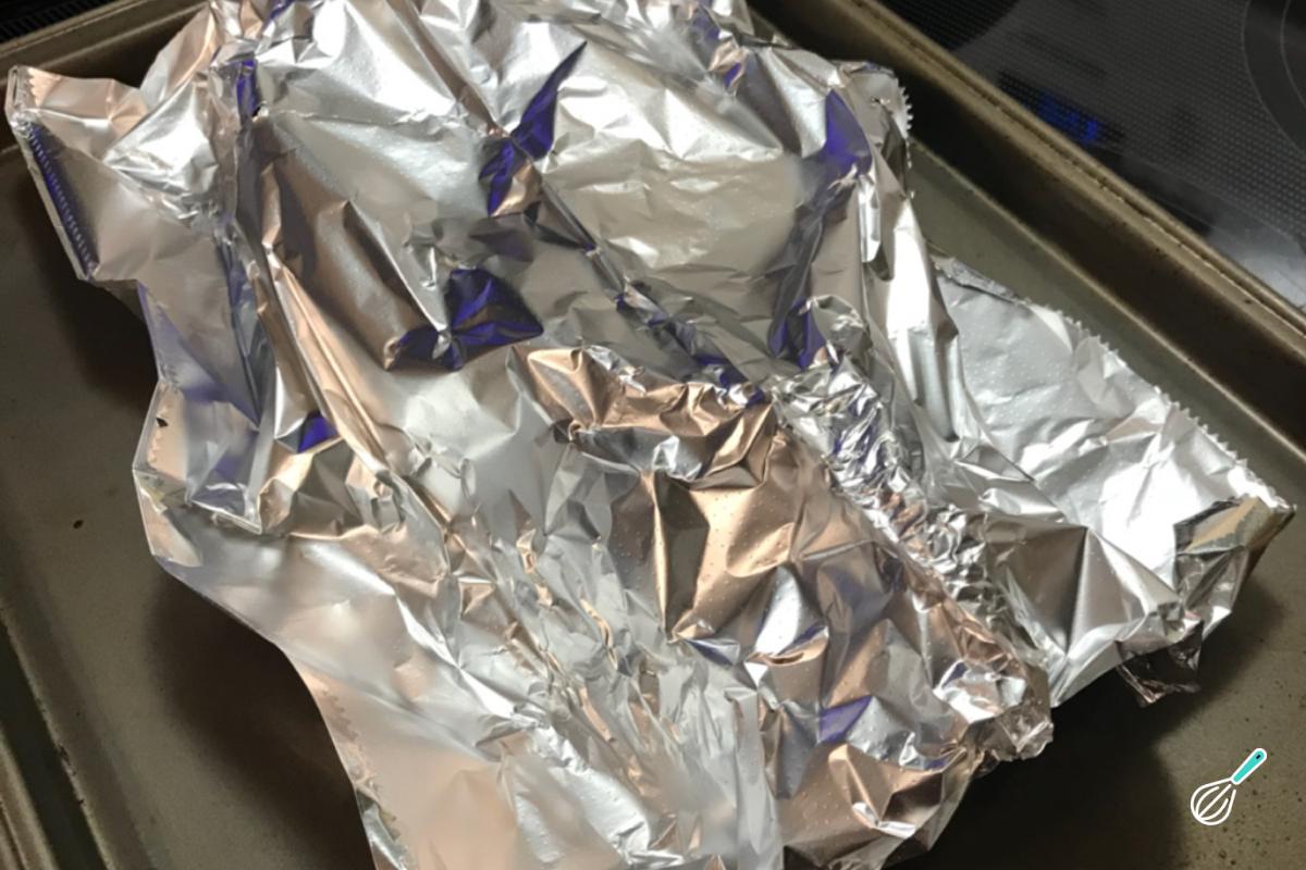 Depois de assar, retire do forno cubra com um papel alumínio. Deixe descansar assim por 15 minutos.