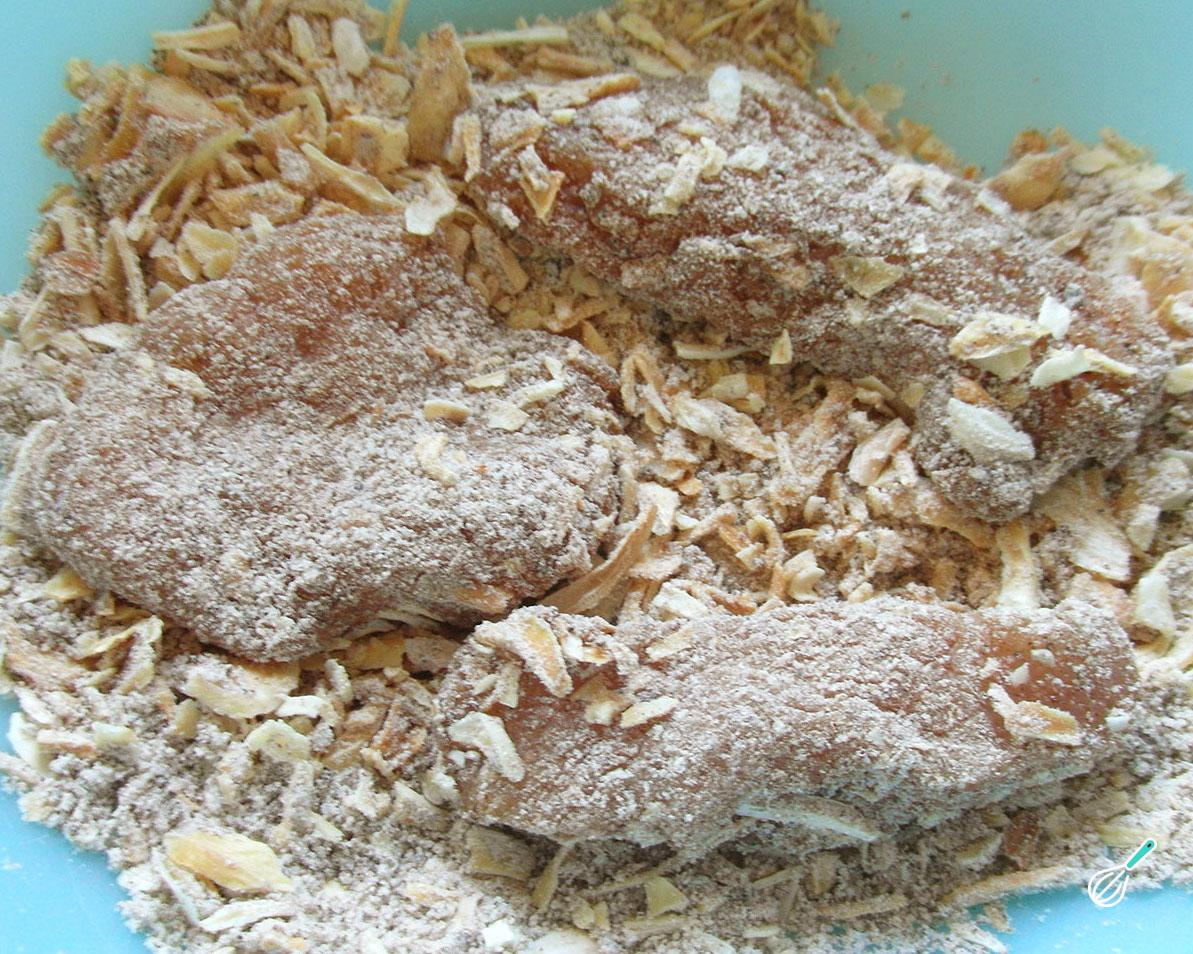 Num prato ou tigela misture os restantes temperos: o creme de cebola, os oréganos e o sal. Envolva os filézinhos nessa mistura, pressionando levemente para que os temperos grudem de um lado e do outro.
