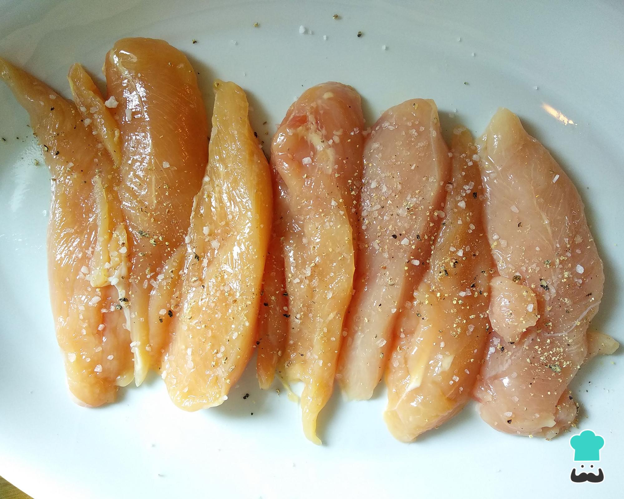 Comece por temperar os filezinhos de frango com suco de limão, pimenta do reino e sal a gosto. Reserve, de preferência, por 30 minutos (para pegar melhor o gosto).