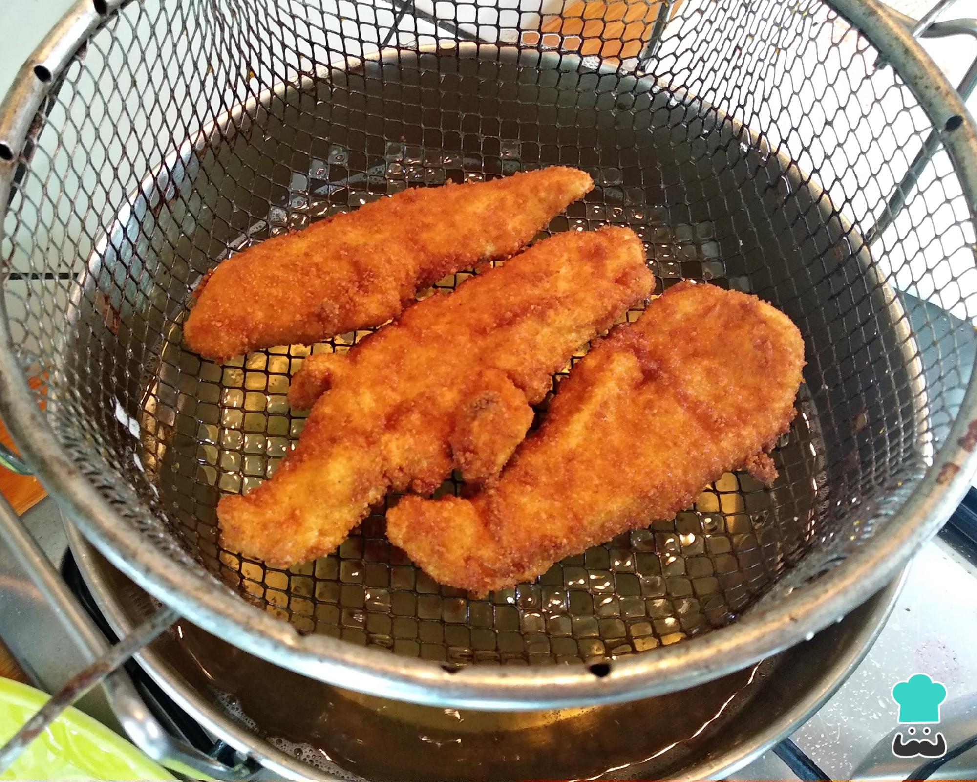 Dica: O tempo de fritura depende do tamanho dos filés e da temperatura do óleo. O óleo deverá estar quente, mas não demasiado para que os filés não fiquem crus no meio.