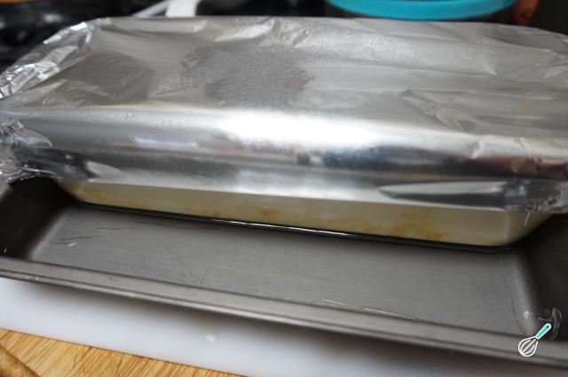Cubra a forma com papel alumínio para que a superfície não queime. Leve ambas as formas ao forno e deixe cozer cerca de 40-50 minutos.