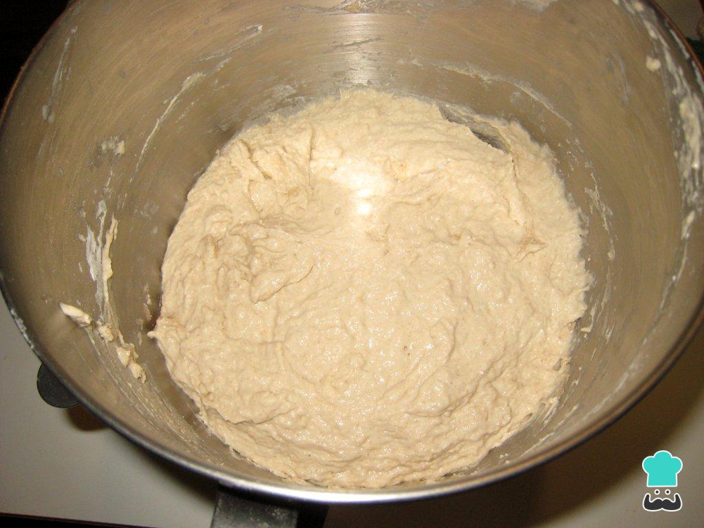 O resultado será uma massa mole, mas um pouco mais consistente que as massas de bolo. Cubra com um pano e deixe repousar em um local quente por 1h e 30 minutos.