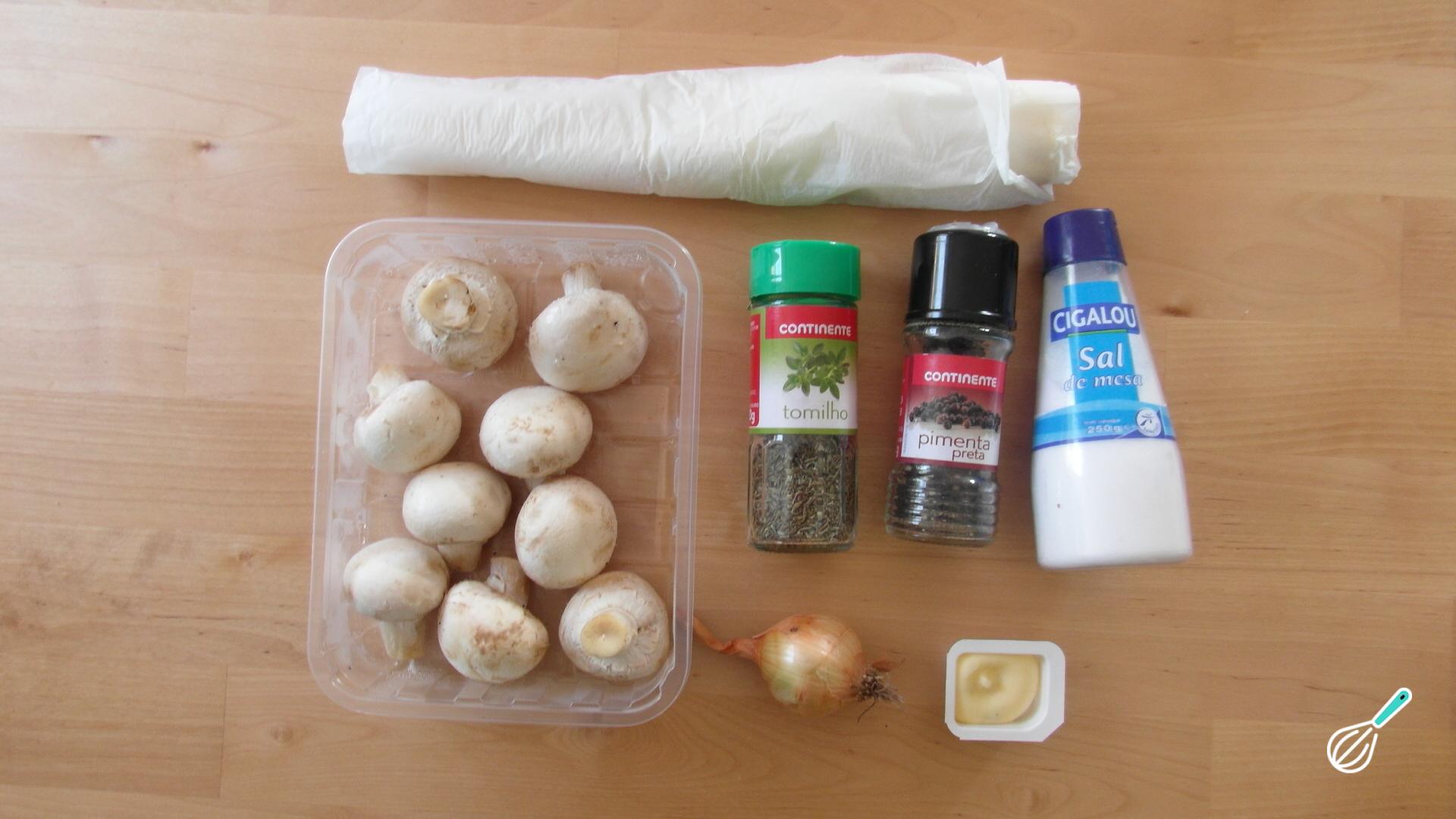 O primeiro passo desta receita de folhadinho de cogumelos é reunir os ingredientes.