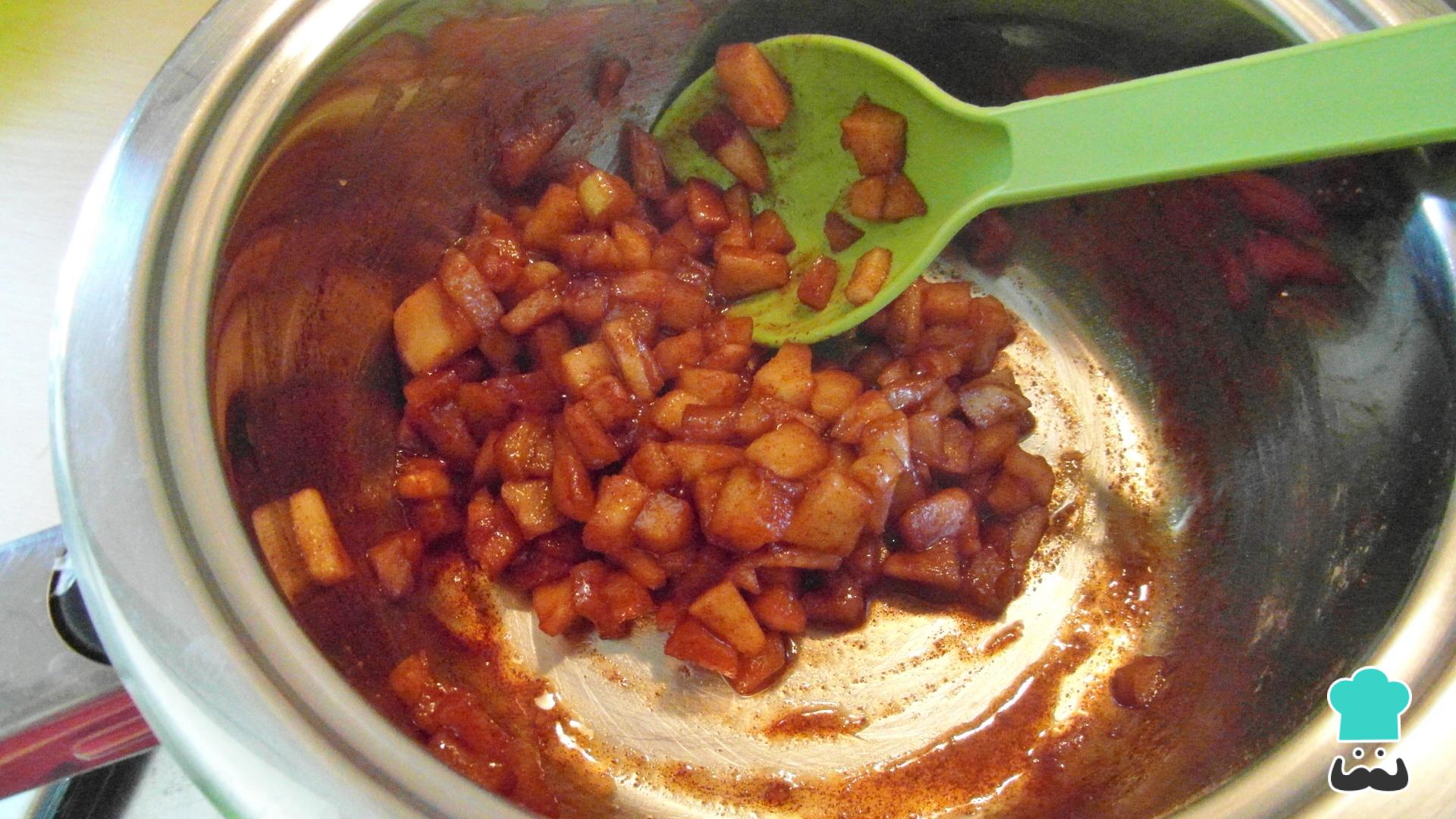 Cozinhe o recheio do folhado strudel até virar uma espécie de compota espessa, o que demorará cerca de 5 minutos.