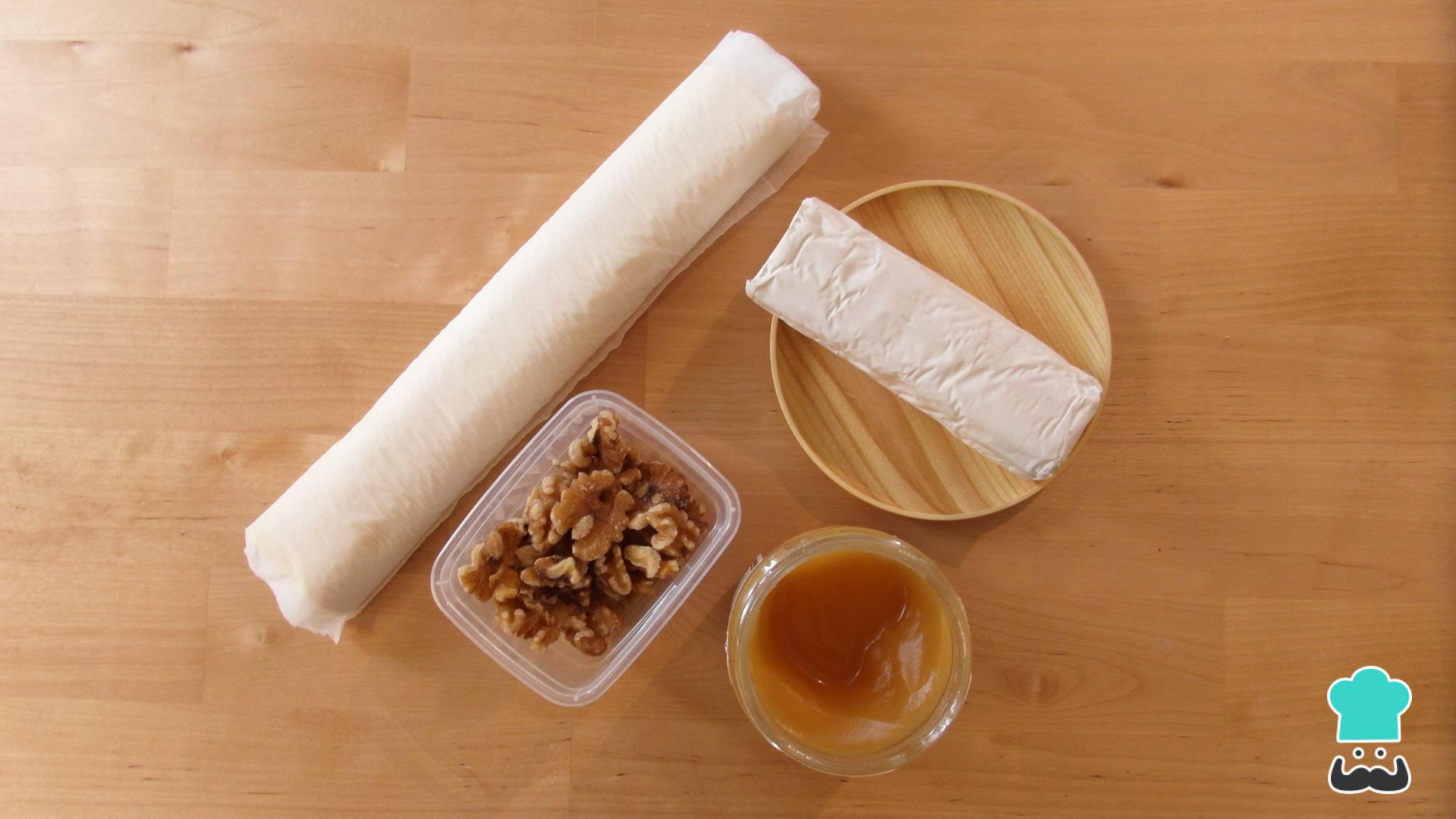 Para preparar esta deliciosa receita de queijo de cabra com mel e nozes comece por reunir os ingredientes necessários.