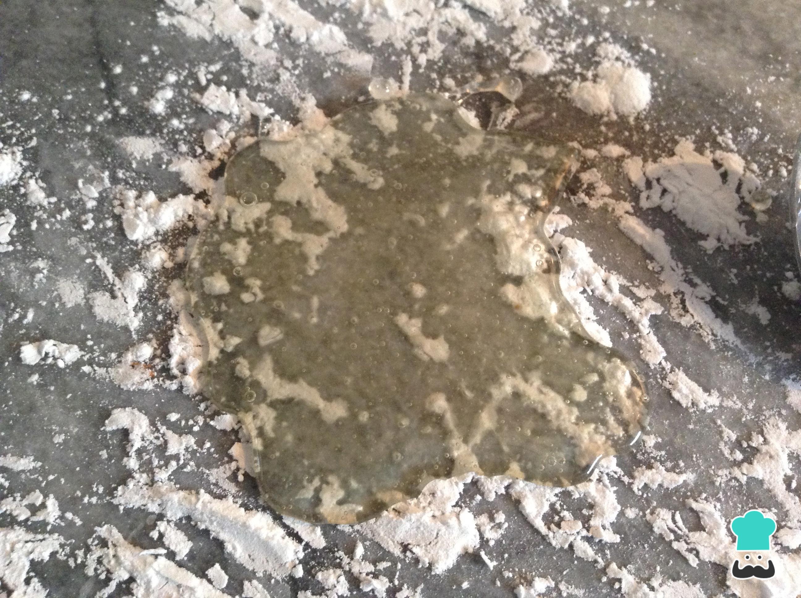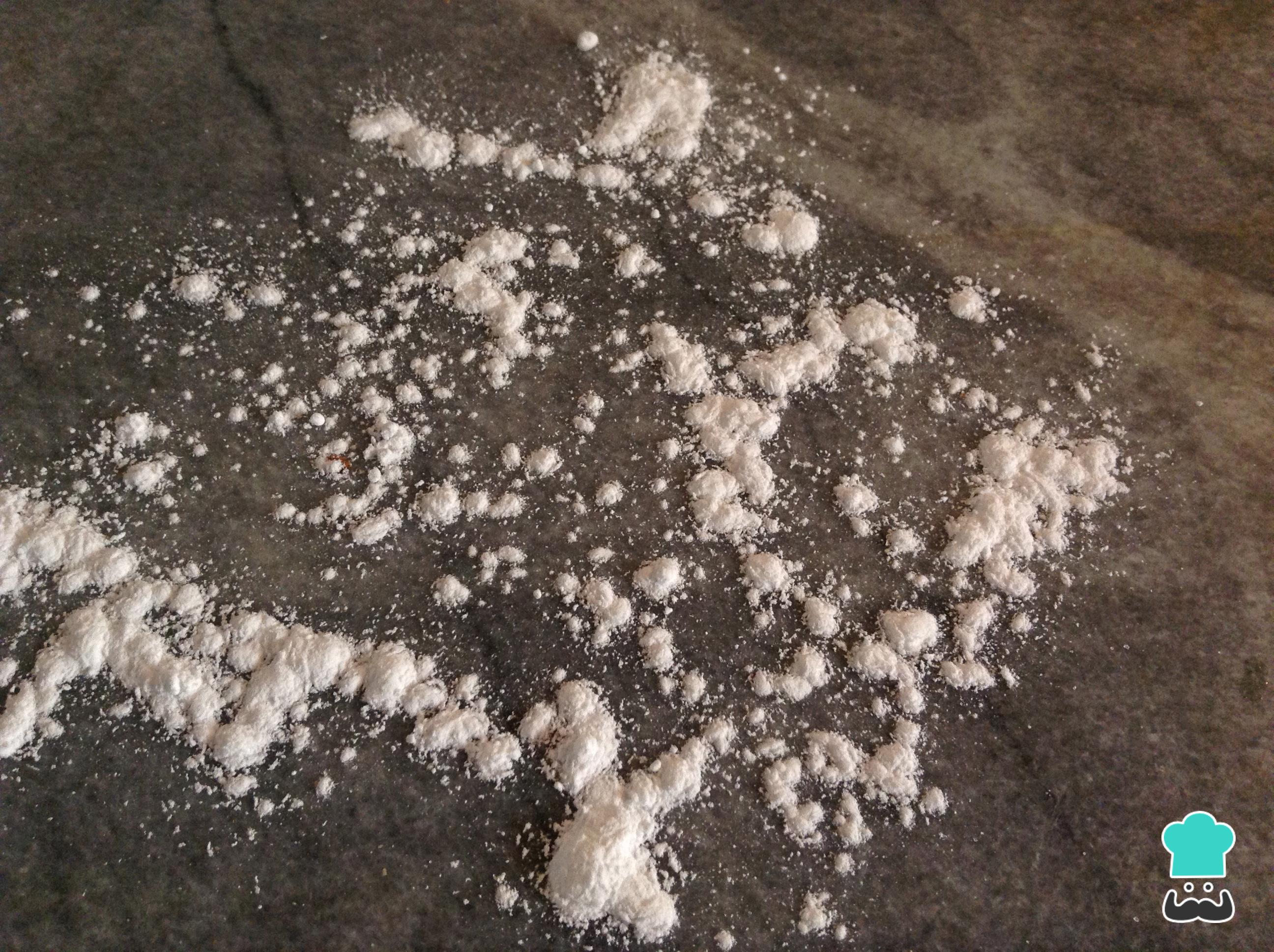 Reserve um pouco de açúcar e espalhe sobre uma superfície lisa e limpa (de preferência de mármore), onde você irá modelar o fondant caseiro para bolo.