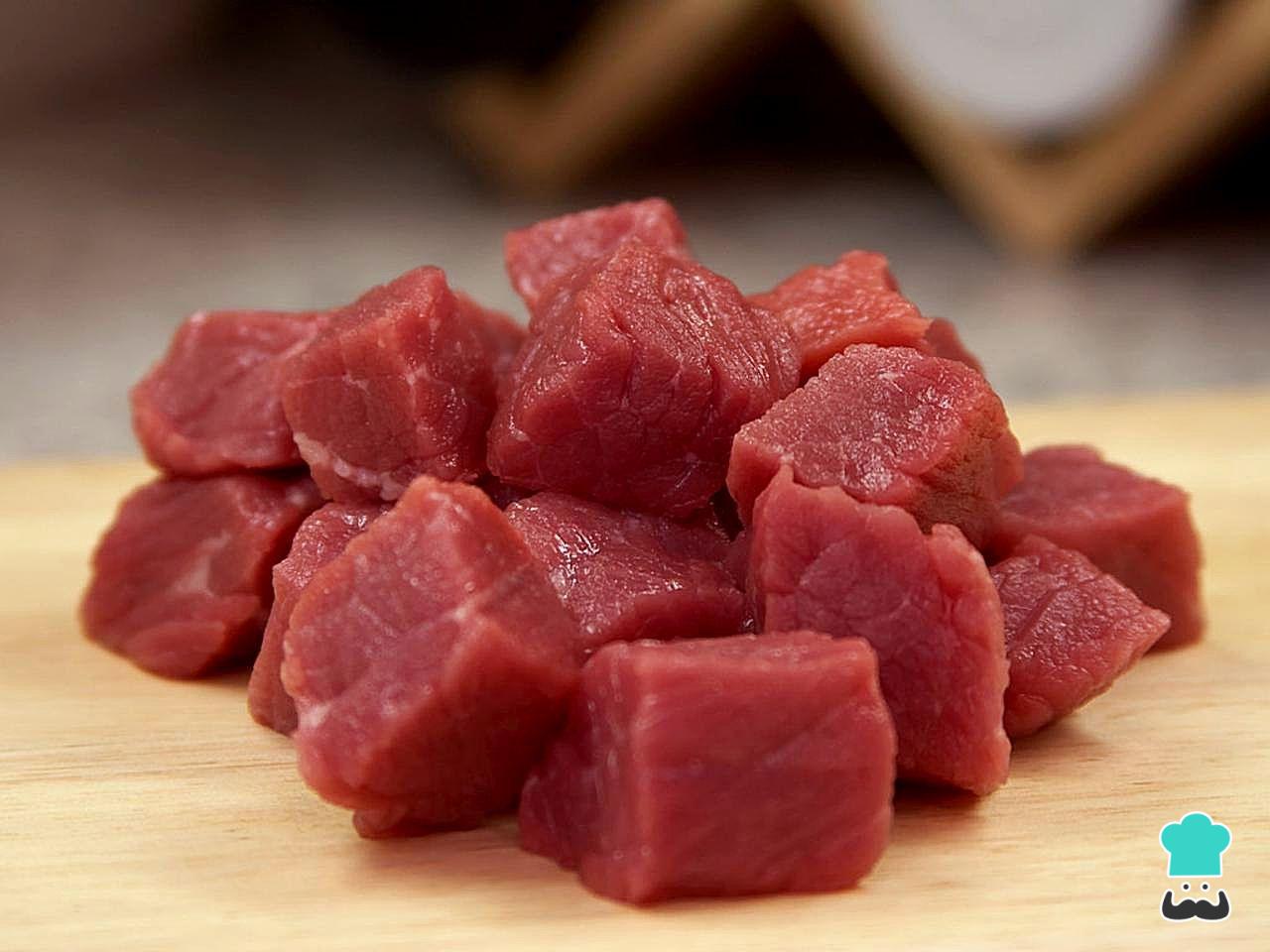 Para preparar fondue de carne simples, comece por cortar a carne em cubos grandes. Tempere com pimenta do reino e sal a gosto e reserve.