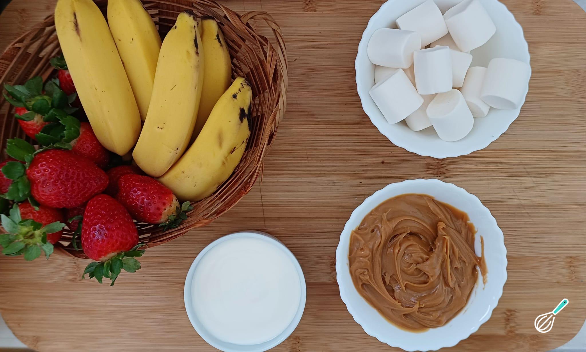 Comece separando os ingredientes necessários para preparar a receita de fondue de doce de leite!