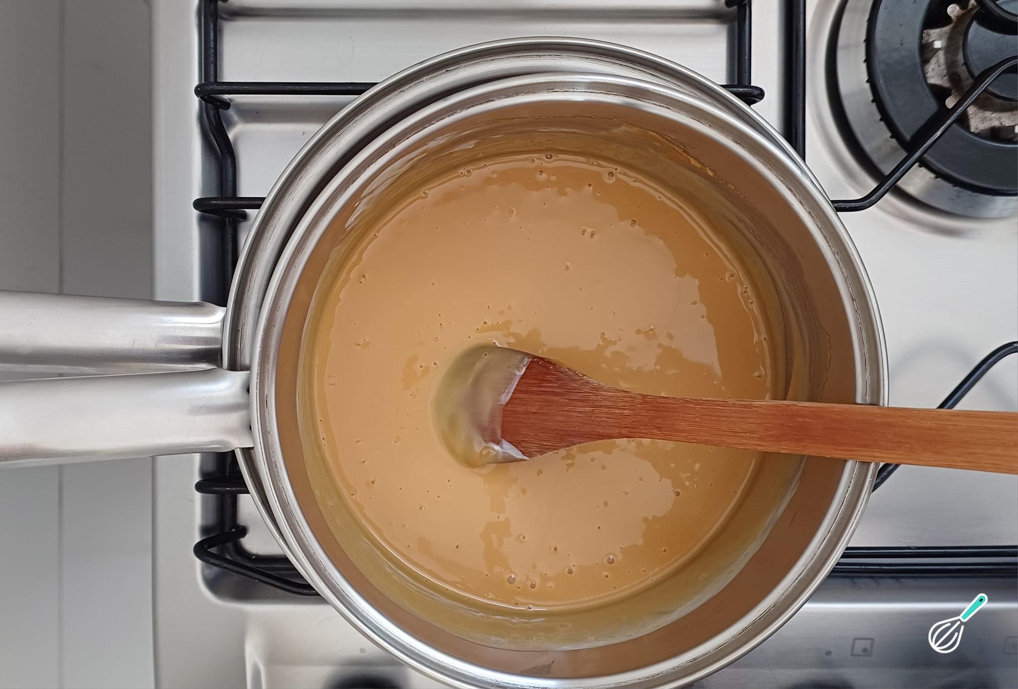 Aqueça essa mistura em uma panela em banho-maria somente alguns minutos até ficar homogêneo.
