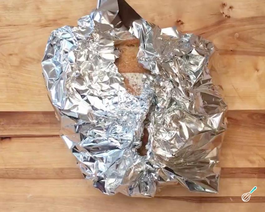 Embrulhe o pão com papel alumínio, coloque em uma assadeira e disponha em redor o miolo cortado em pedaços. Leve ao forno a 200ºC por 40-45 minutos. Ao fim desse tempo espreite se o conteúdo já derreteu e está cremoso, se ainda estiver consistente deixe no forno por mais 10 minutos.