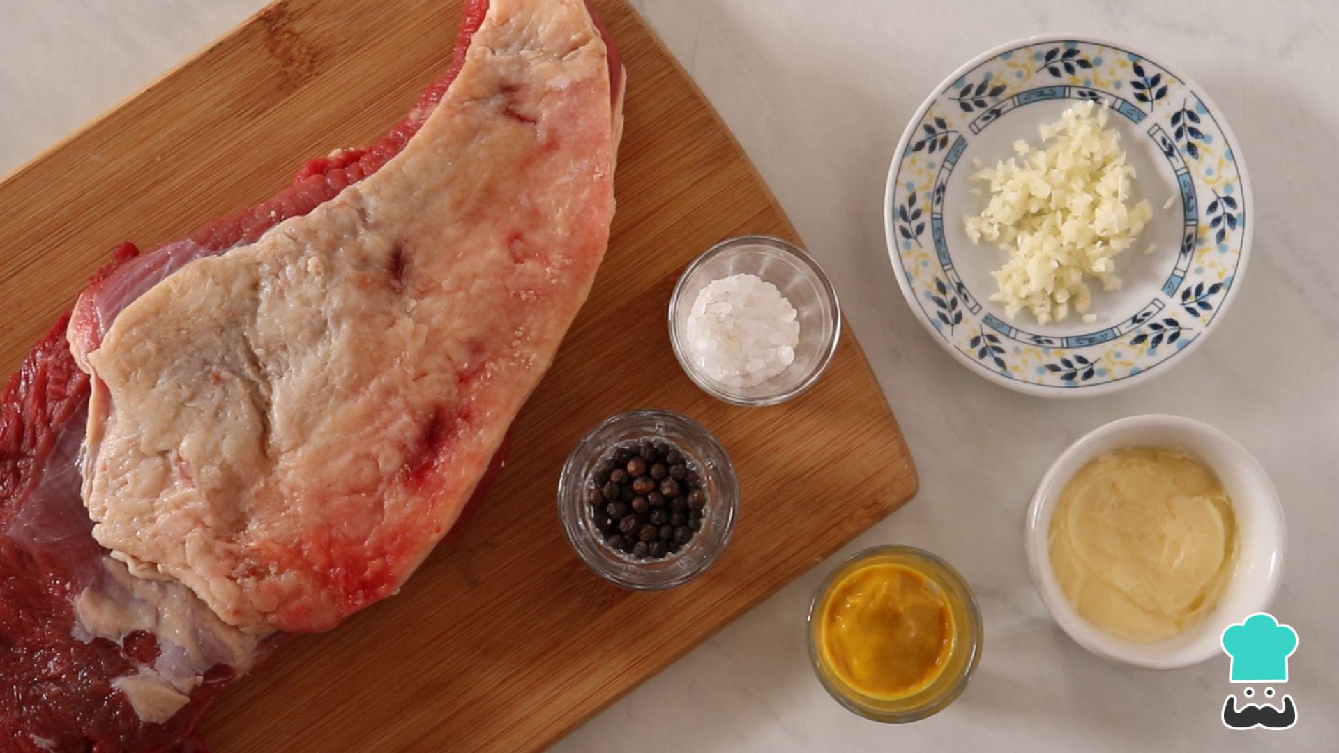 Comece separando os ingredientes para preparar essa fraldinha assada.