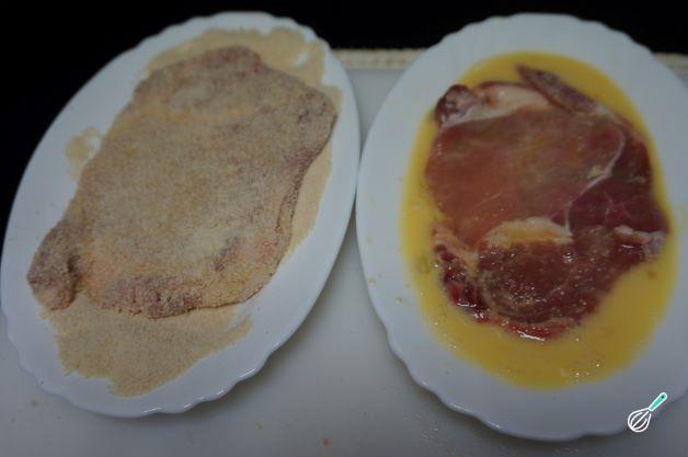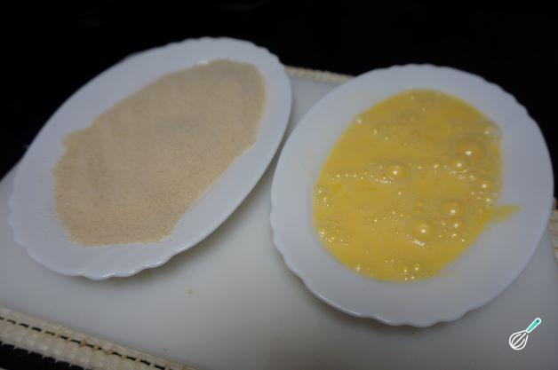 Bata os ovos e em outra tigela adicione a farinha de rosca e adicione sal e pimenta a gosto nos dois.