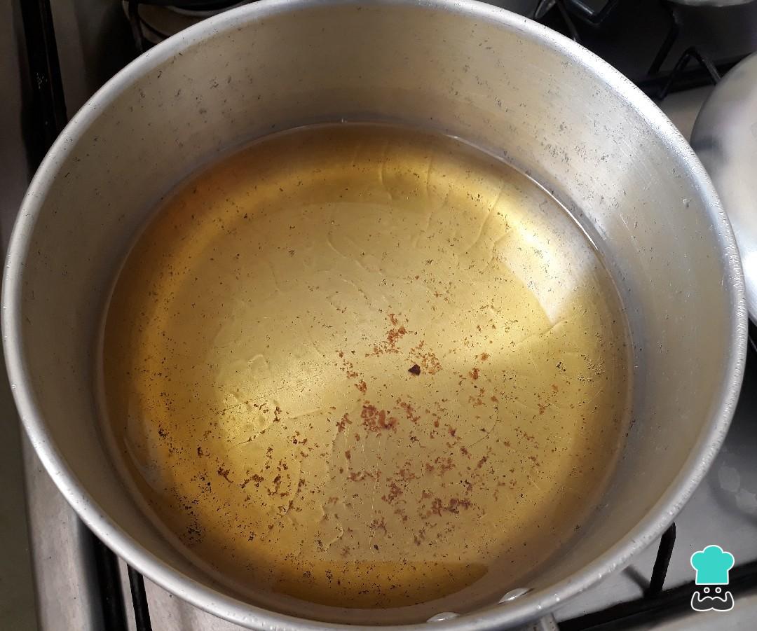Enquanto isso, em uma panela coloque o óleo e deixe esquentar.