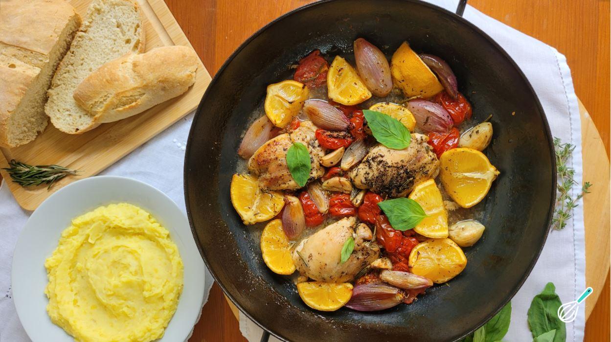 O frango à provençal é uma receita clássica do sul da França que traz todo o sabor e frescor mediterrâneo com ervas frescas, tomate e um toque de limão siciliano.