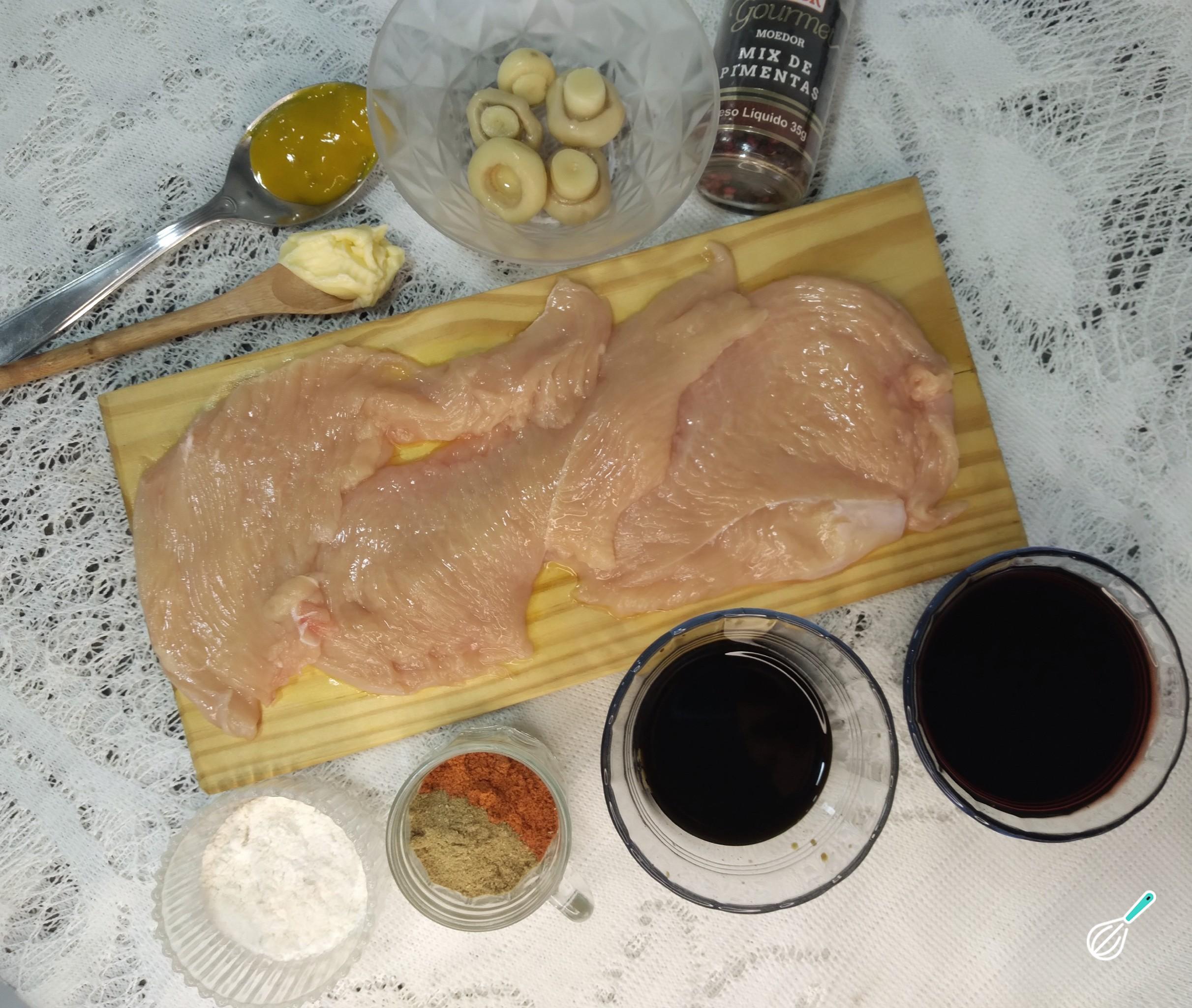Comece separando os ingredientes para o preparo do frango ao molho madeira.