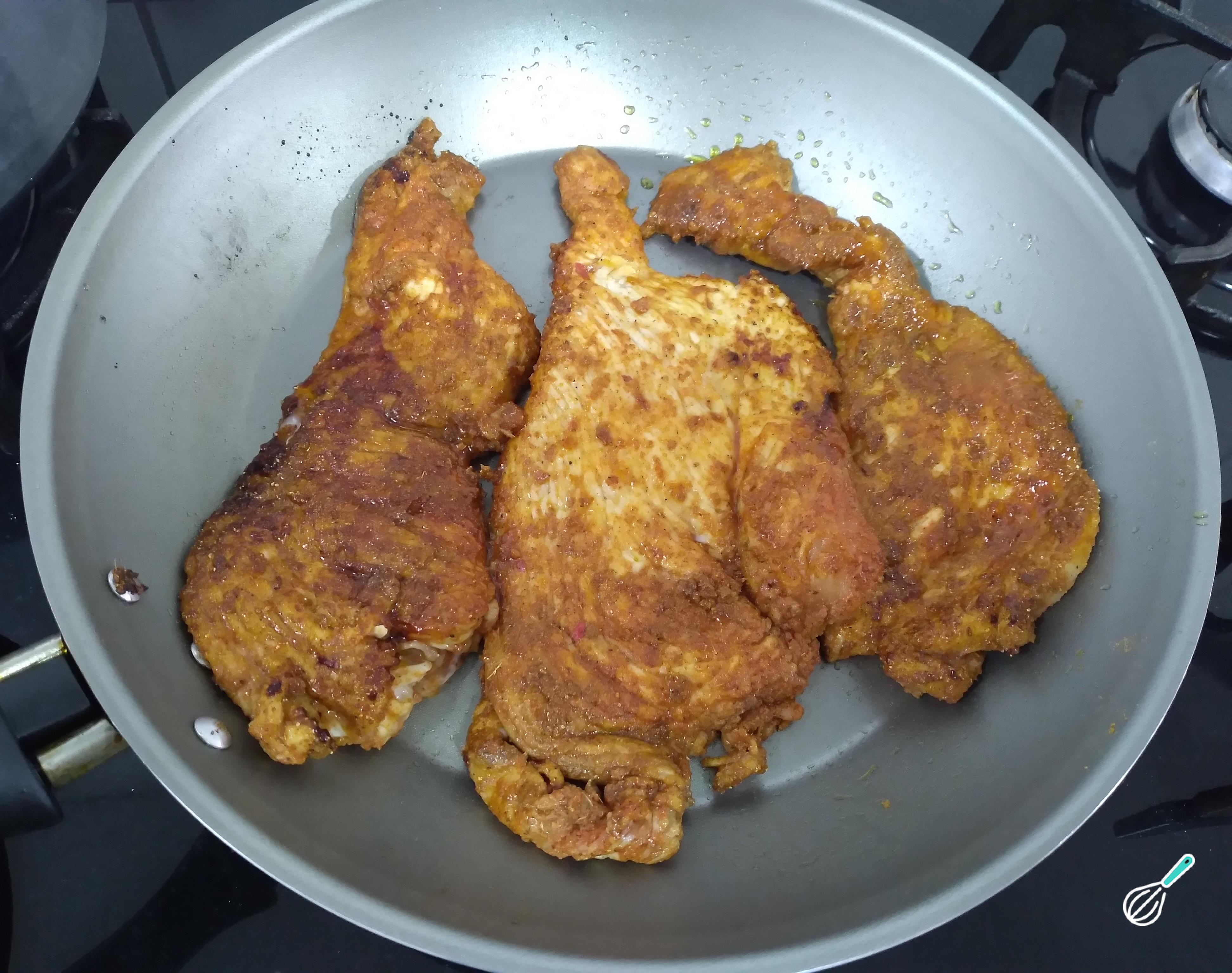 Dica: Para que fiquem mais dourados, coloque um pouco de açúcar para caramelizar e coloque o frango.