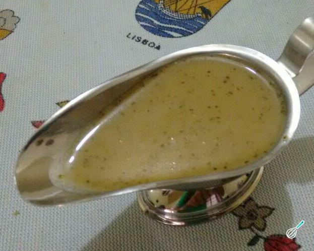 O caldo com temperos que ficou na primeira assadeira você coloca no liquidificador, bate e coa. Leve ao fogo com a maisena, mexendo até engrossar. Transfira esse molho de frango assado para uma molheira e sirva junto com o frango.
