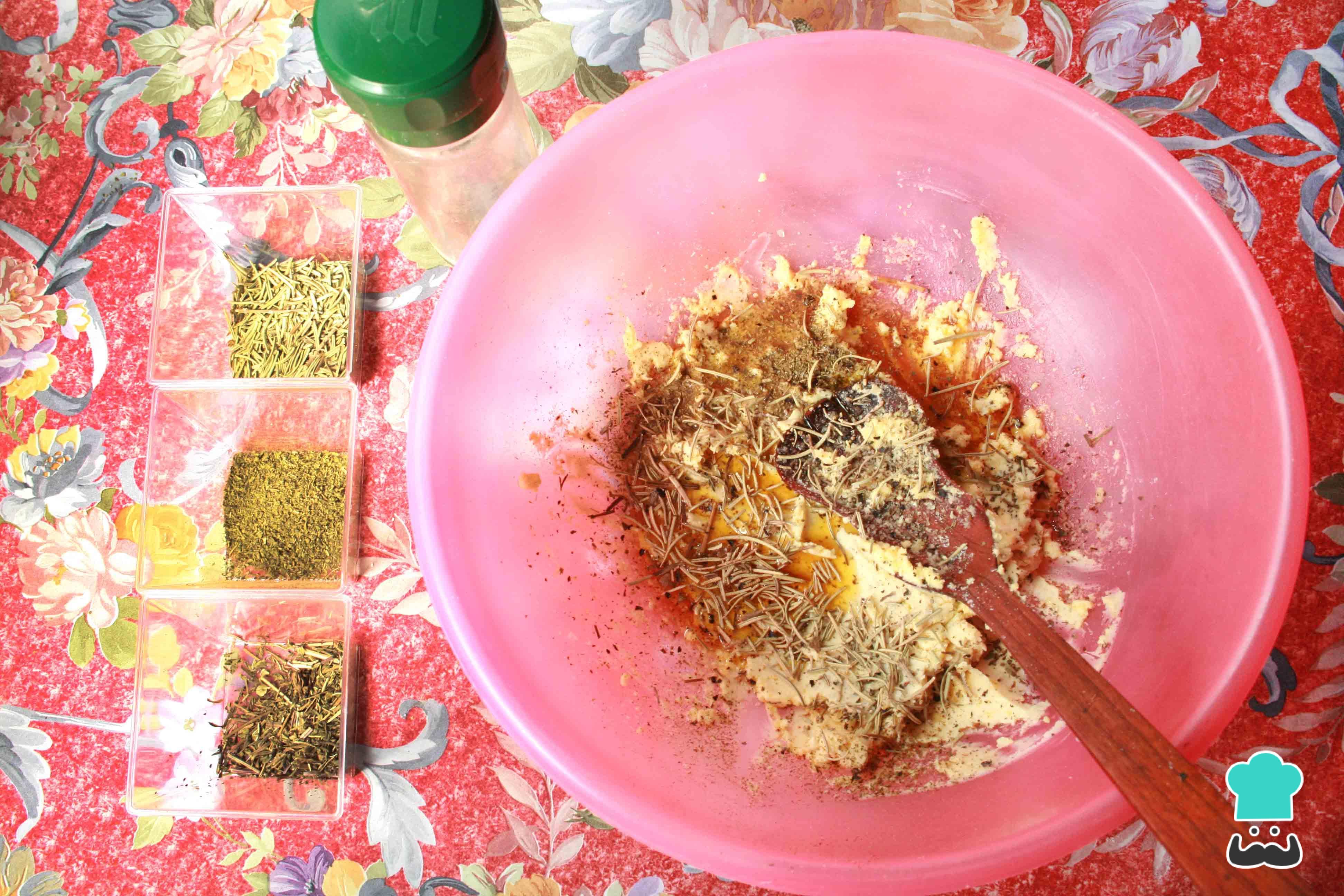 Comece por misturar a manteiga com as ervas e temperar com sal e pimenta a gosto.