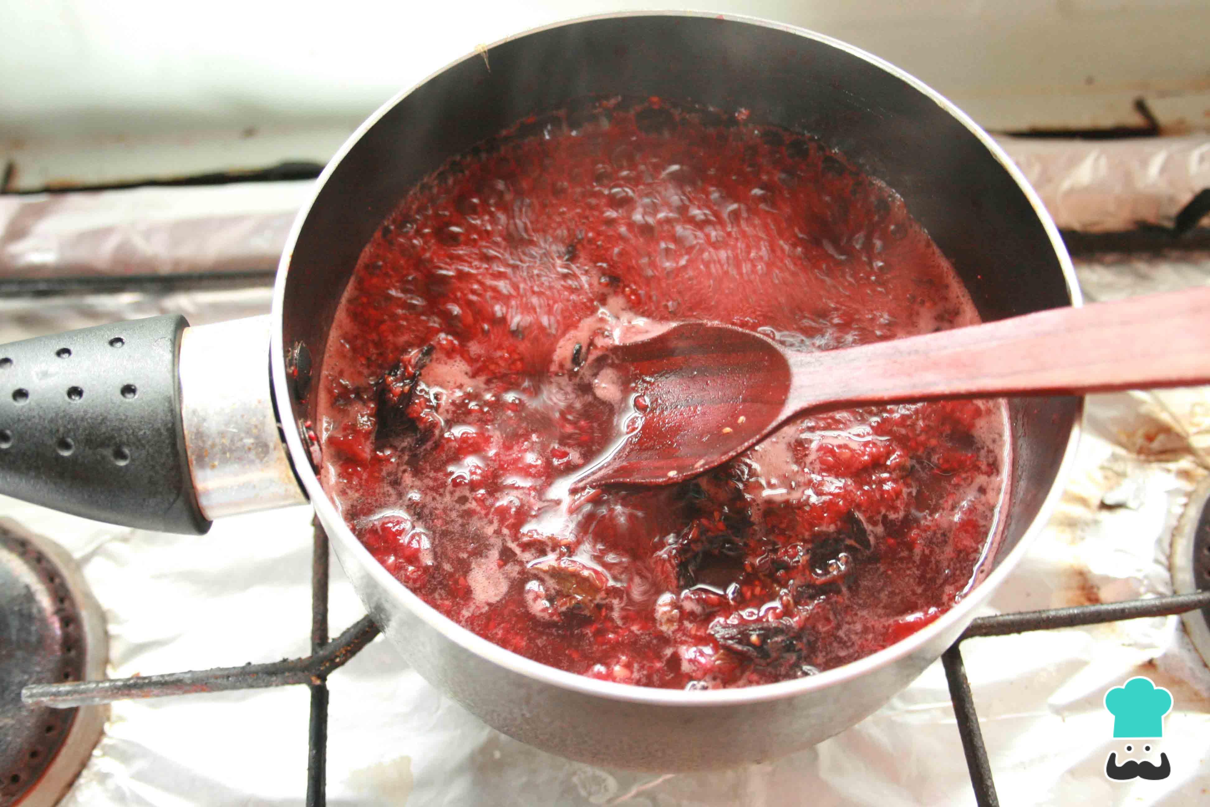 Retire as flores de hibiscos e acrescente as frutas vermelhas, a manteiga, o alho e a hortelã. Deixe ferver até as frutas ficarem bem macias. Se o frango já tiver soltado seus sucos, adicione também 4 colheres de sopa do suco dele à panela, para harmonizar os sabores.