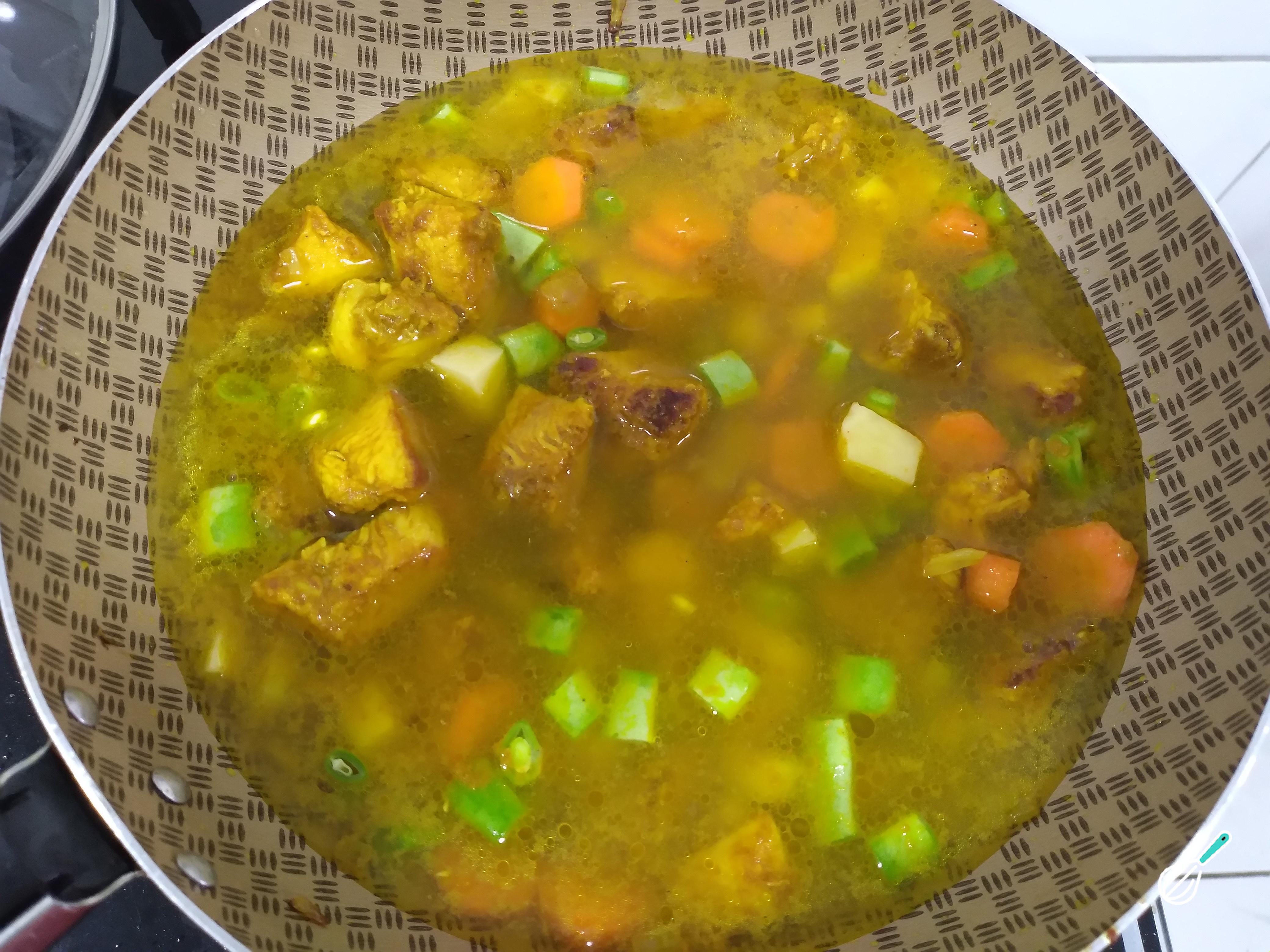 Cubra a panela com água e deixe cozinhar em fogo médio para baixo. Depois que água secar um pouco, prove e se precisar acrescente mais água e deixe mais um tempo cozinhando. Os legumes e o frango cozinhando juntos vão absorver os sabores dos temperos.
