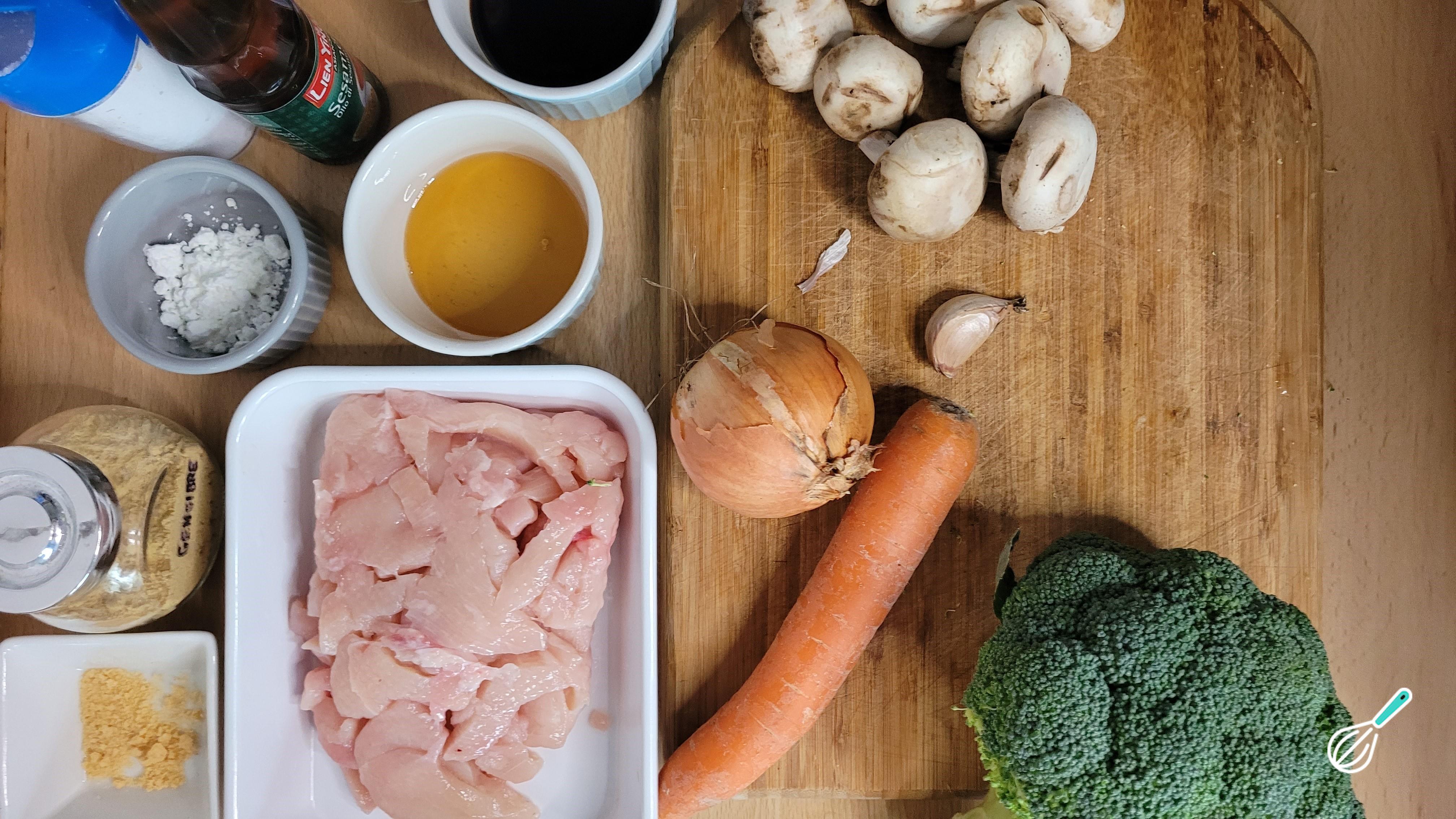 Separe todos os ingredientes para fazer seu frango com brócolis e cenoura.
