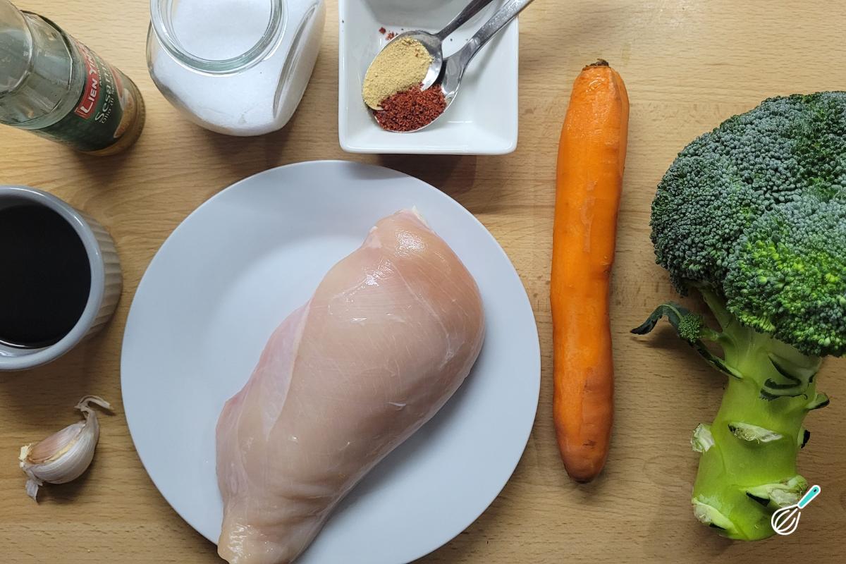 Separe os ingredientes para fazer sua receita de frango com brócolis.