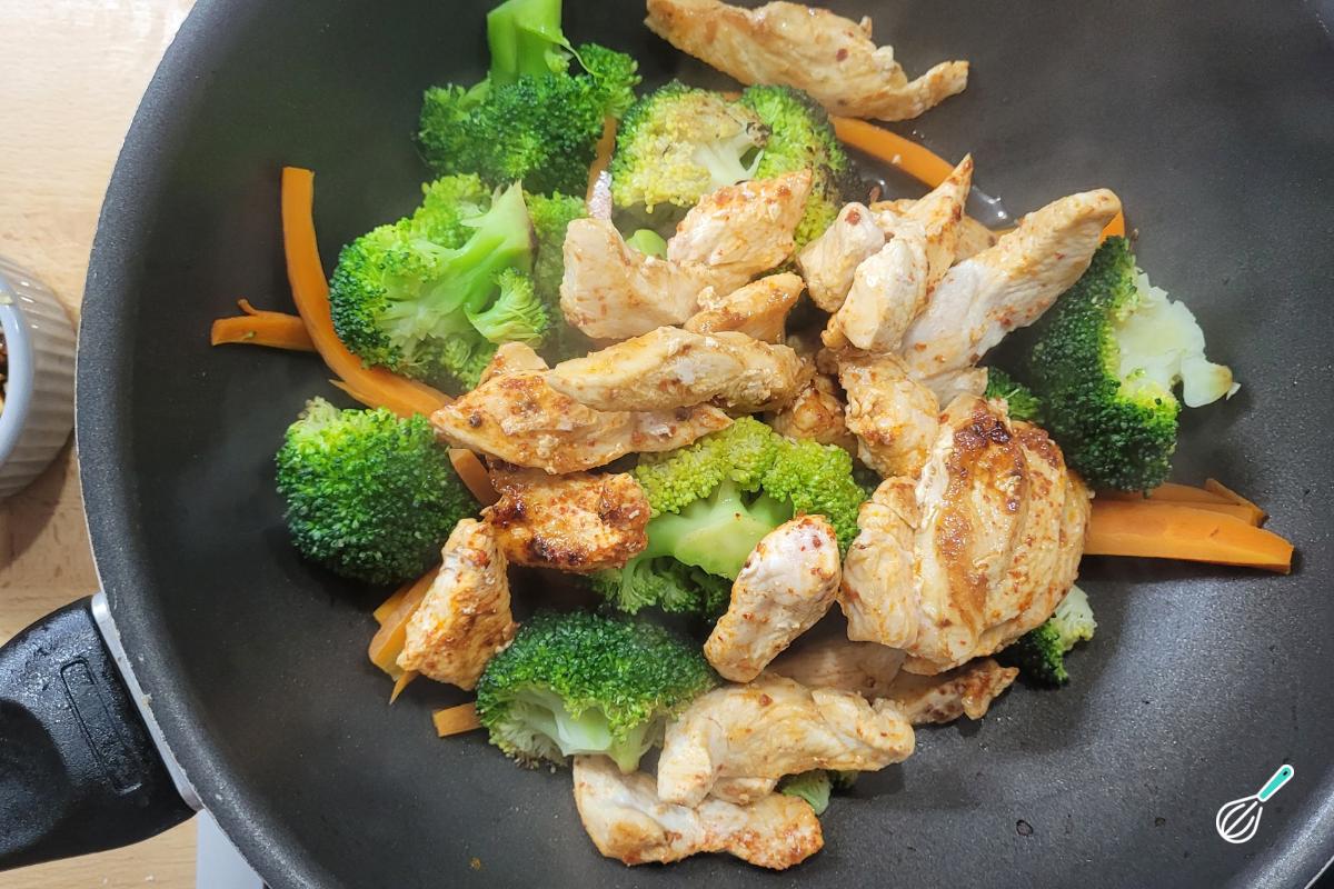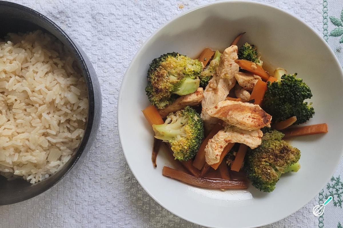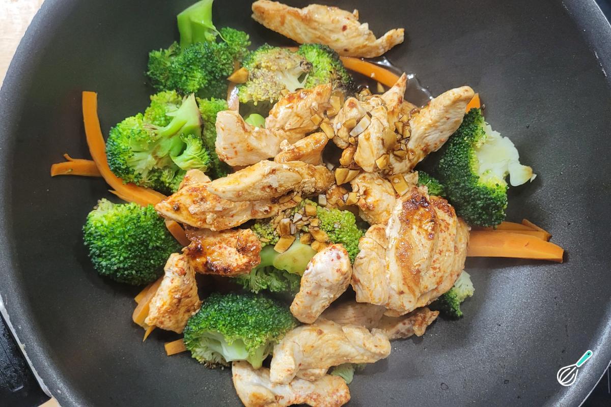 Aqui o frango com brócolis ganha um toque asiático com um molho à base de shoyu e temperos como gengibre em pó e pimenta, que elevam o sabor e deixam o frango com brócolis do dia a dia ainda mais especial. Além disso, os vegetais são refogados, deixando-os mais saborosos e com mais textura. Assim fica mais fácil comer saudável com mais sabor. Com poucos ingredientes e em uma panela só, essa receita ainda é super prática e rápida de fazer, perfeita para um jantar saudável para os dias corridos.