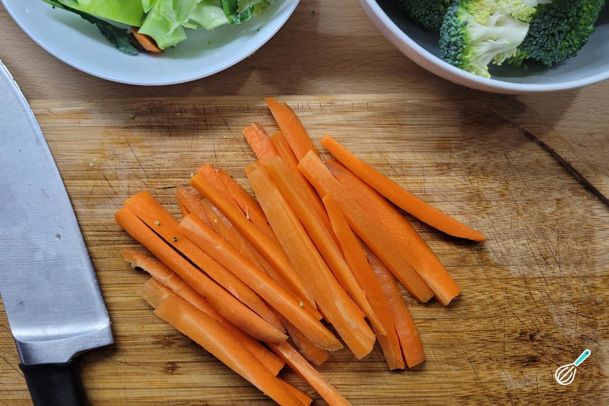 Corte a cenoura em tiras (se preferir, pode ralar).