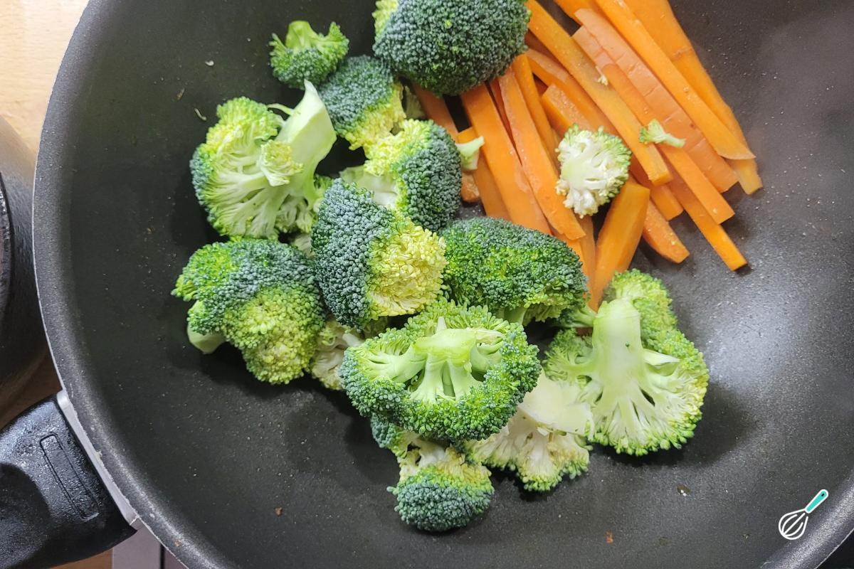 Quando a cenoura estiver mais macia, adicione o brócolis.