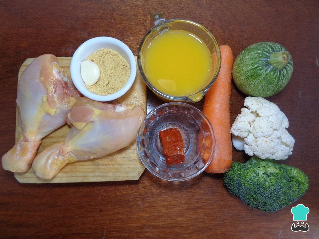 O primeiro passo para fazer este frango com colorau ao forno é juntar todos os ingredientes necessários.