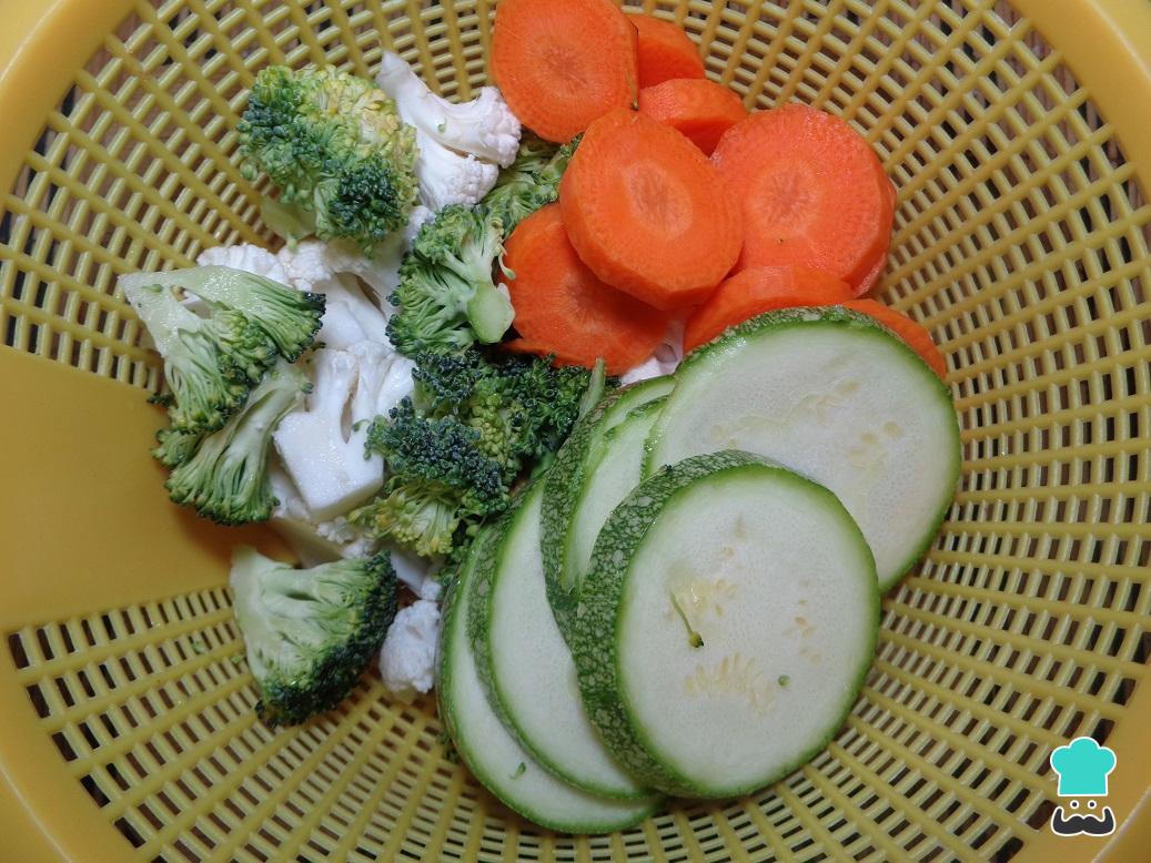 Enquanto o frango marina, lave as verduras e corte-as em pedaços pequenos.