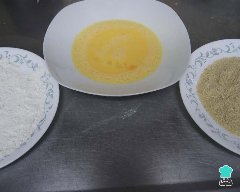 Em seguida prepare os ingredientes para empanar: num prato coloque a farinha de trigo, no outro os ovos batidos e, noutro prato, as sementes de gergelim. Passe os filés de frango pela farinha, depois envolva no ovo e, por fim, empane com o gergelim.