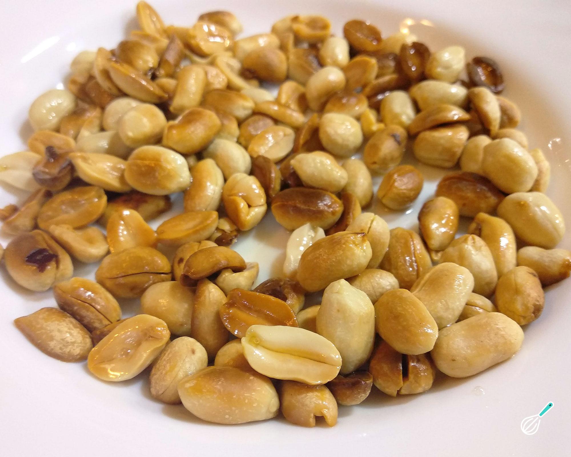 Dica: Dourar os amendoins na frigideira também é útil para aromatizar o azeite em que será cozinhado o frango.