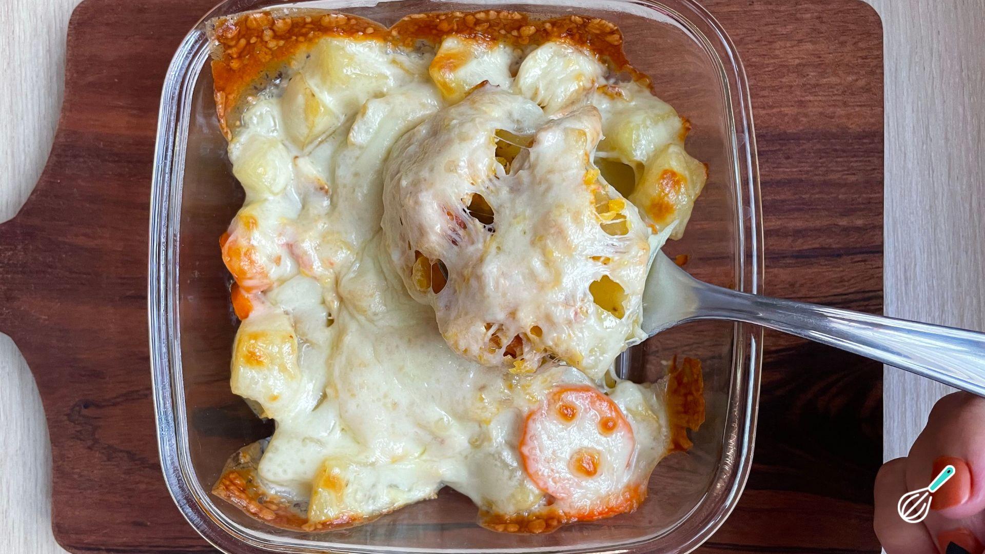 Finalize com queijo muçarela a gosto e leve ao forno até o queijo gratinar.