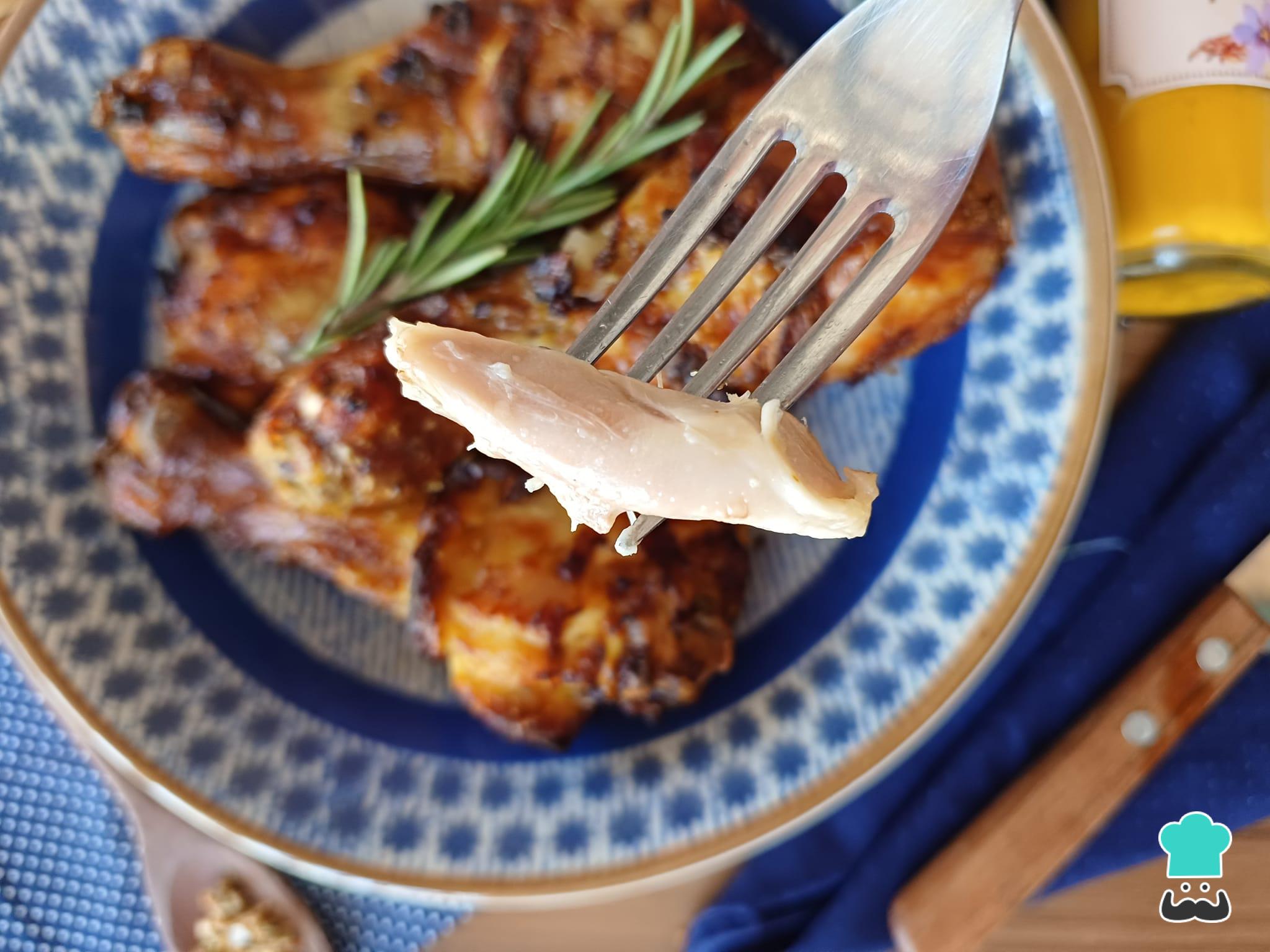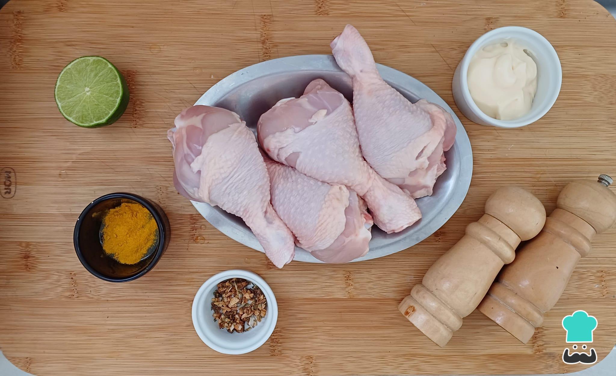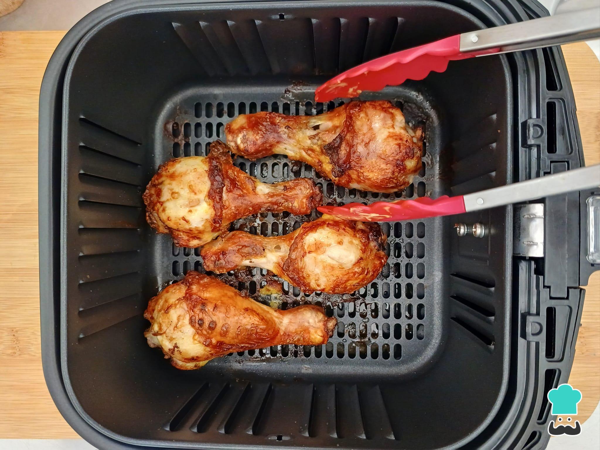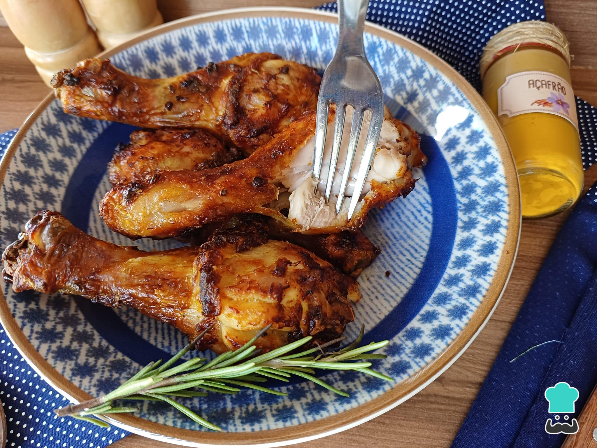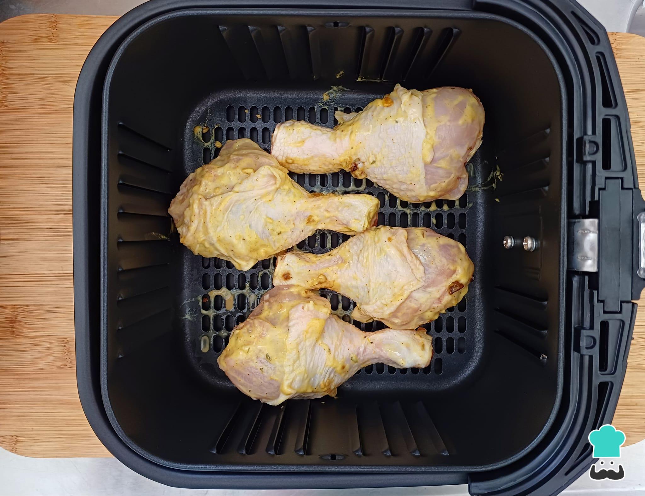 Sugerimos as coxas de frango, mas pode substituir por coxinhas da asa, sobrecoxas ou outras partes do frango, lembrando que o tempo para assar poderá variar de acordo com o seu aparelho.