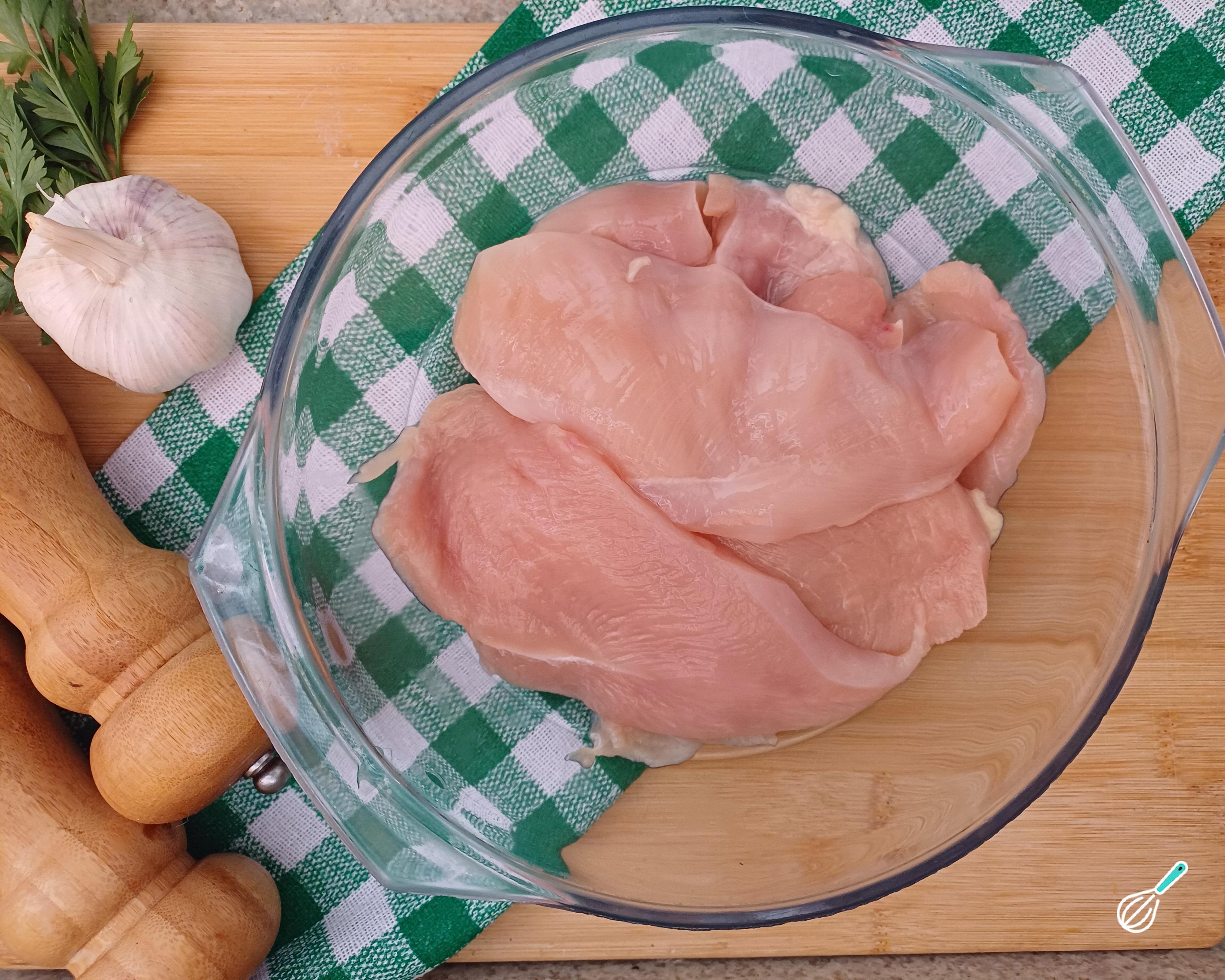 Tempere os filés de frango com sal e pimenta do reino a gosto. Deixe descansando por 15 minutos para pegar bem o tempero.