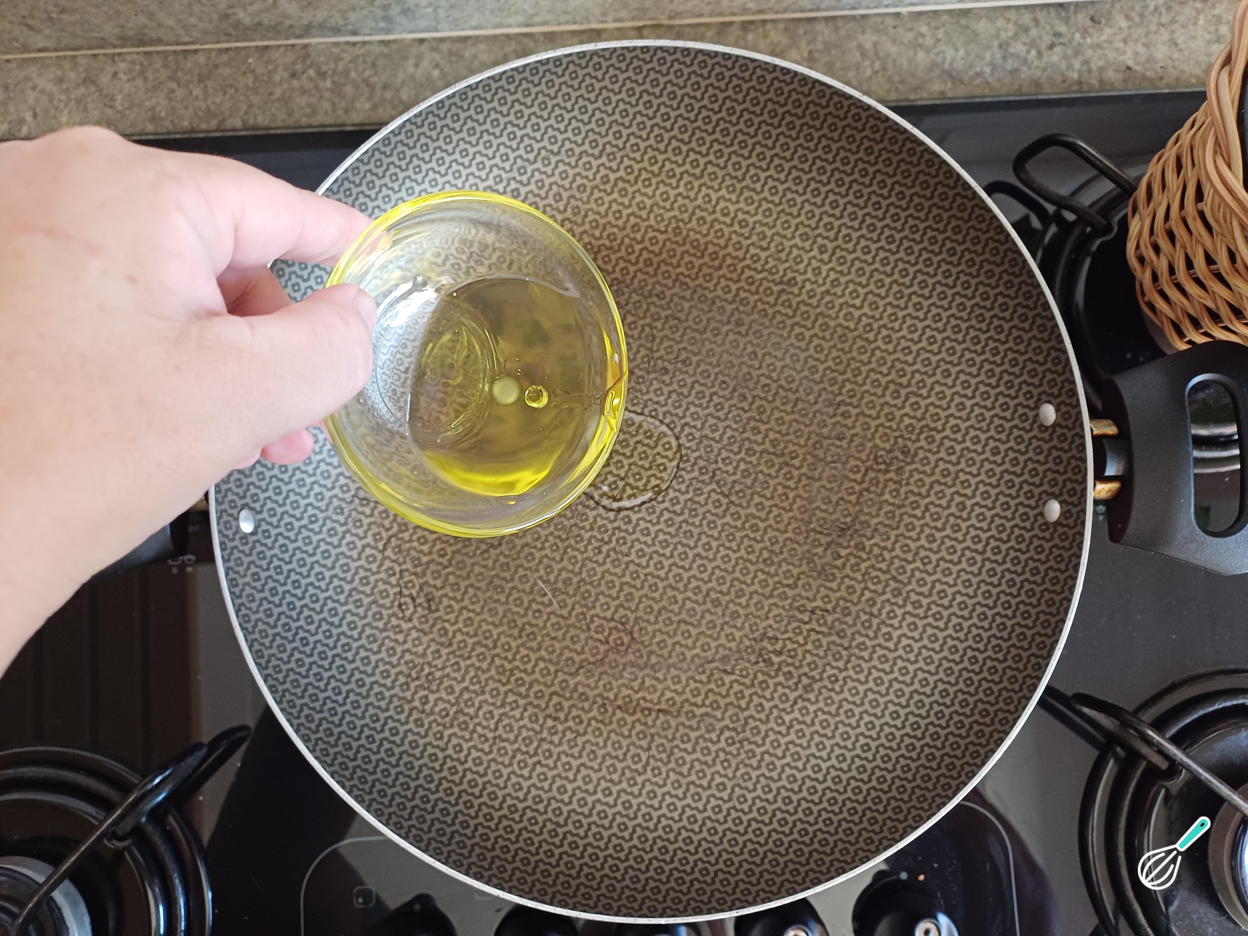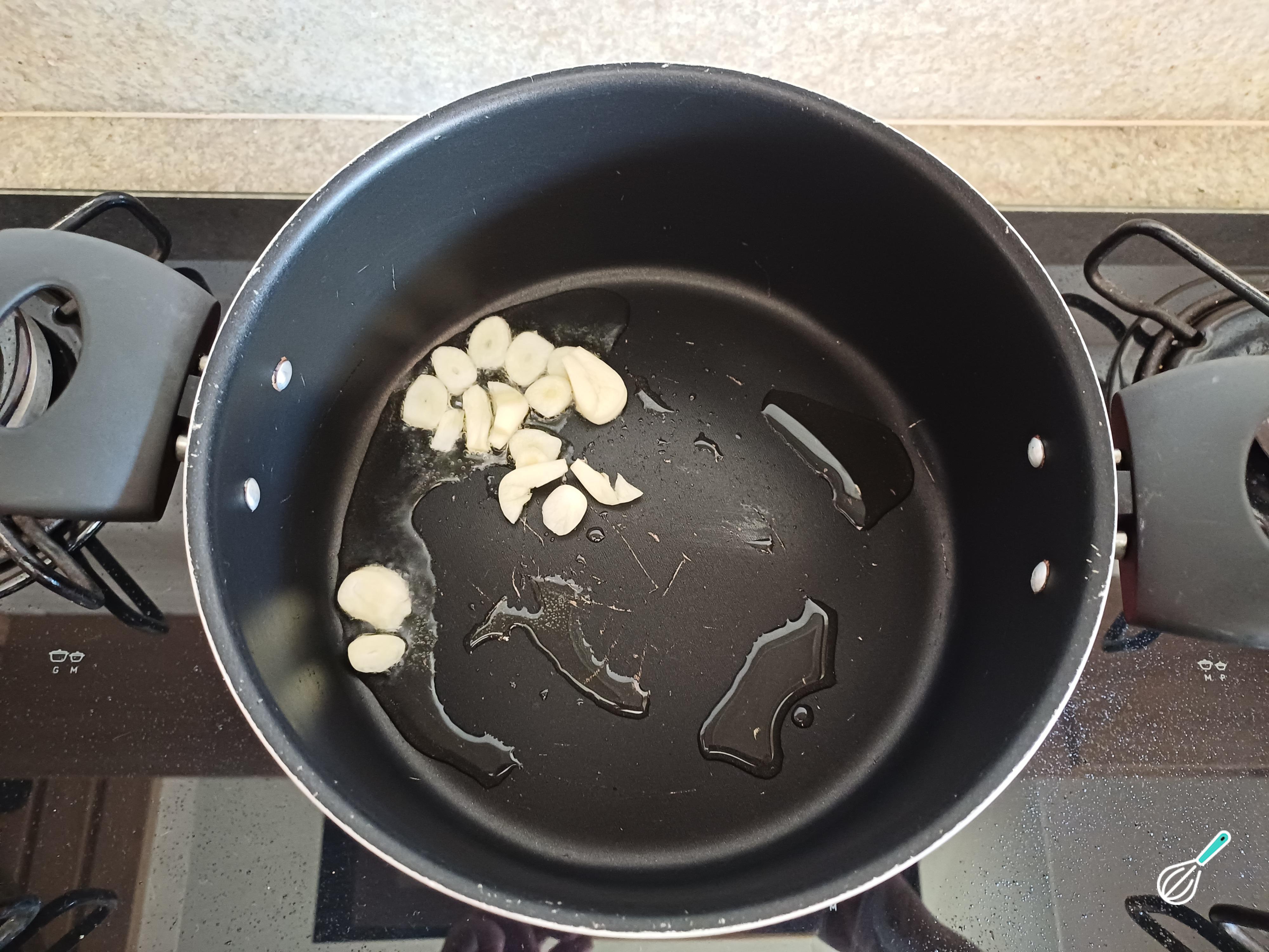 Na mesma frigideira que grelhou os filés de frango, adicione mais um fio de azeite e refogue o alho até dourarem.