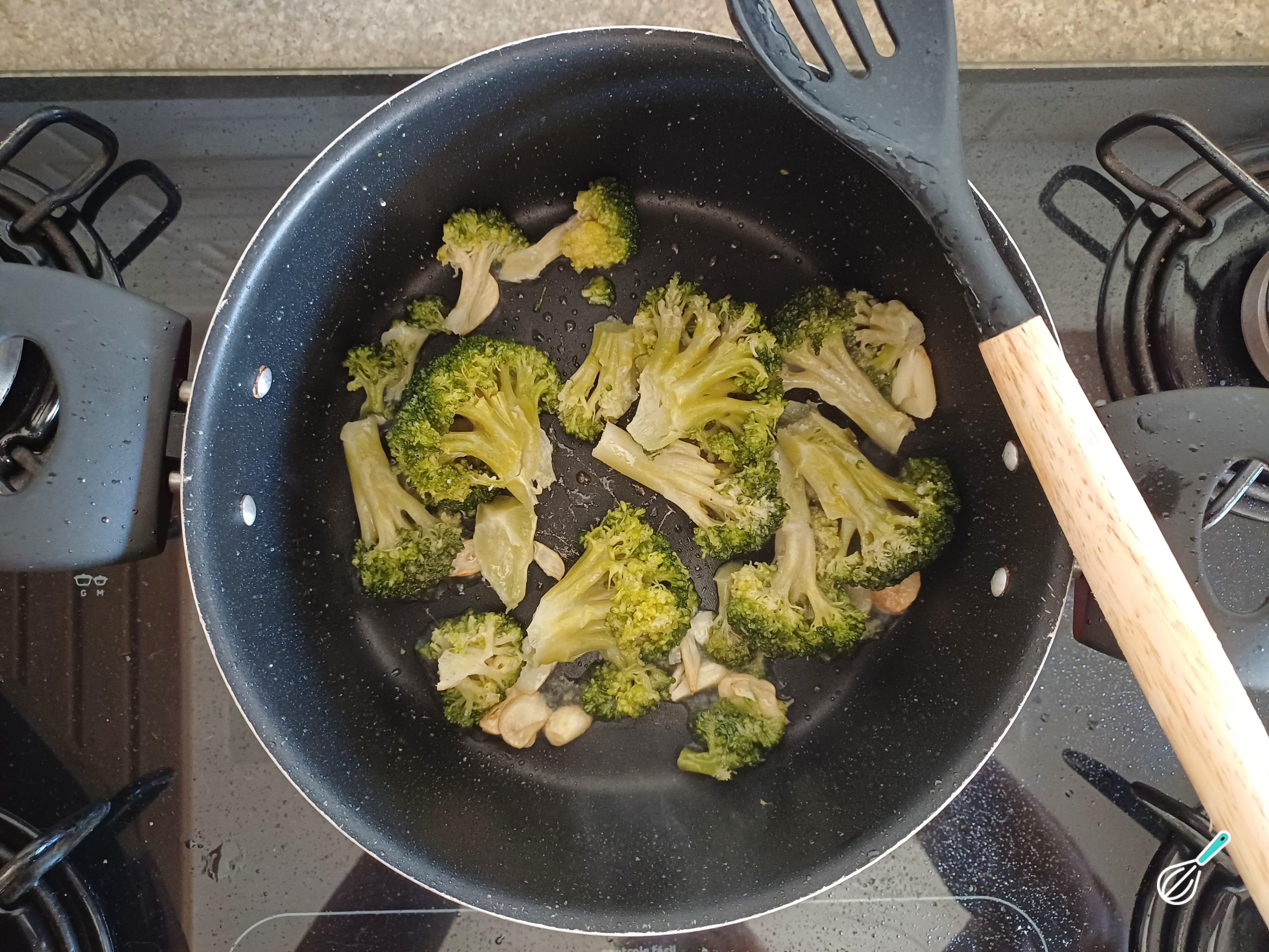 Dica: Pré-cozinhe os brócolis em água e sal por 10 minutos antes de refogar, para que fiquem mais macios.
